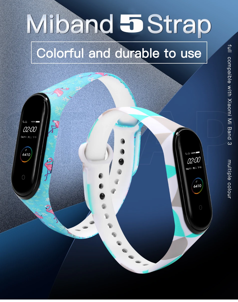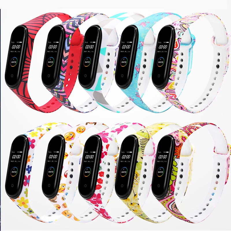 1. Новый ремешок на запястье, силиконовый водонепроницаемый ремешок с рисунком цветов mi band 5, ремешок на запястье mi band 5, ремешки mi band 5, ремешки mi band 5