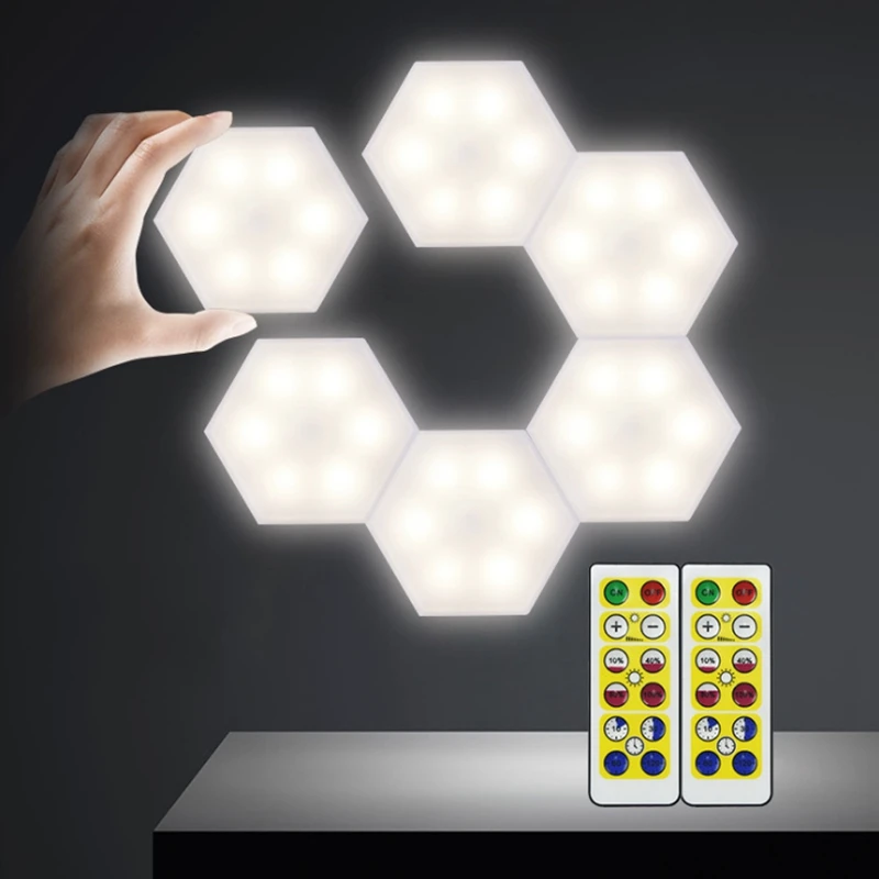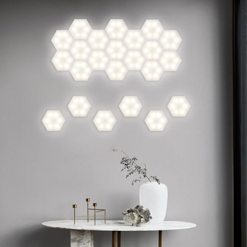 1. Это модульный сенсорный настенный светильник. Используйте шестиугольный флоппи-диск для создания любой структуры, чтобы удовлетворить ваши потребности, затем включите и выключите, прикоснувшись к нему.