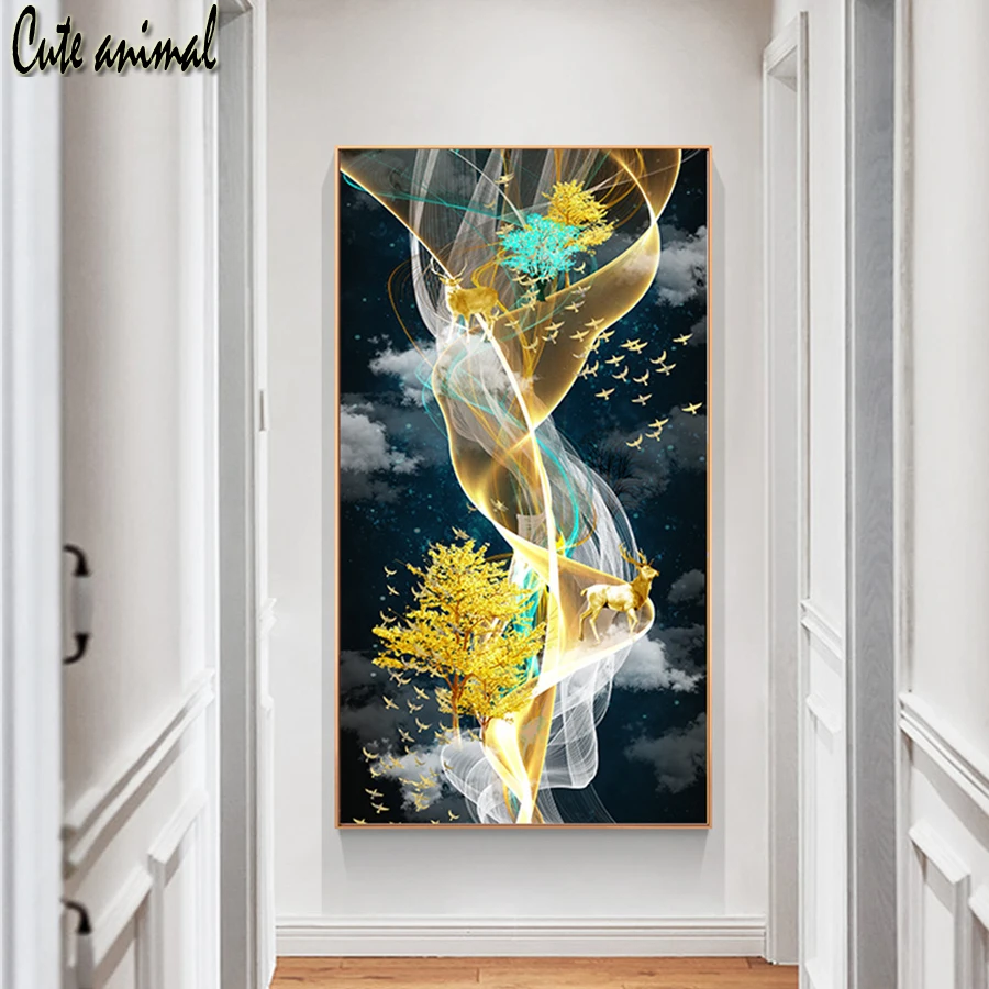 DIY Алмазная Картина абстрактный Золотой антилоп дерево Пейзаж 5D Вышивка крестиком 3D Алмазная вышивка мозаика Стразы живопись