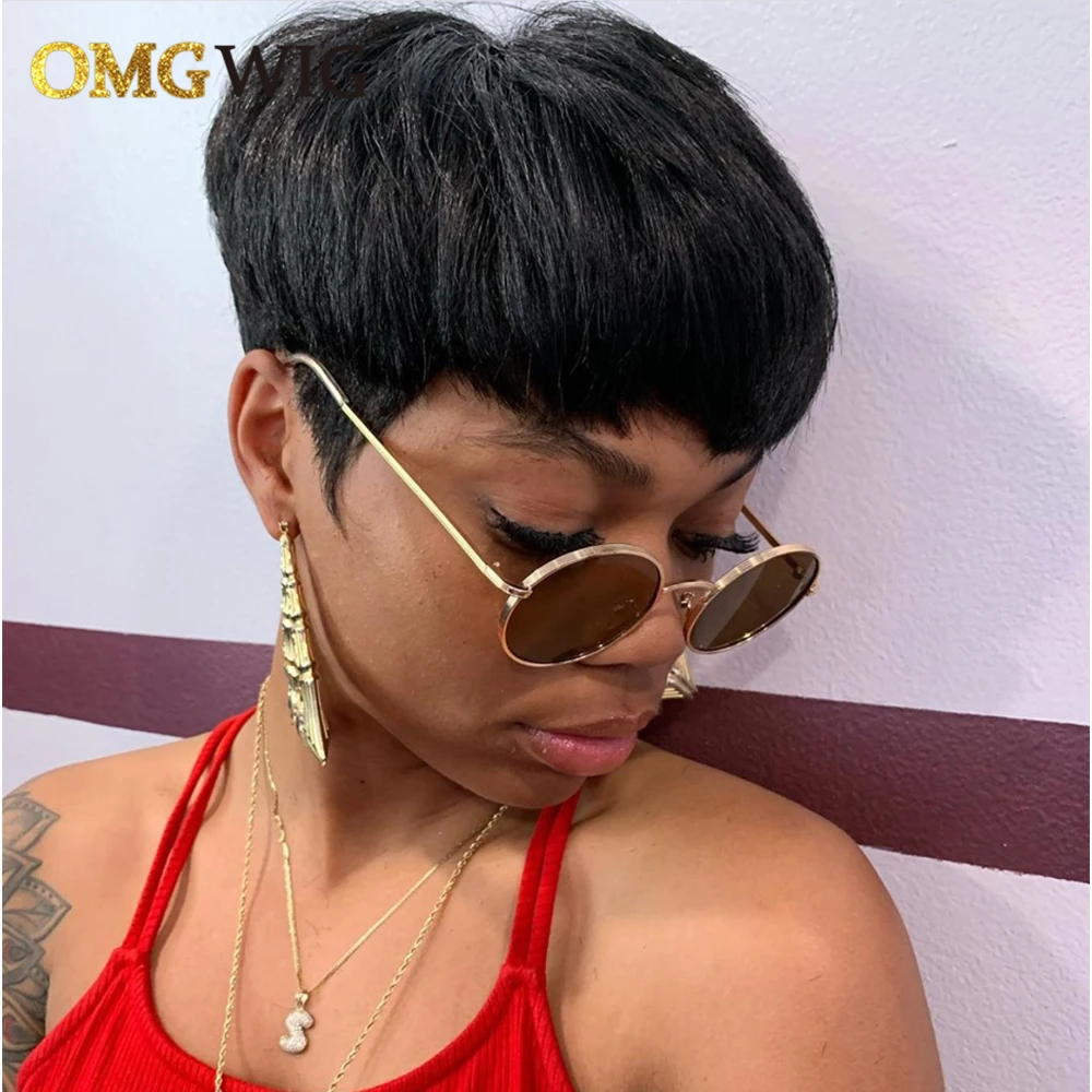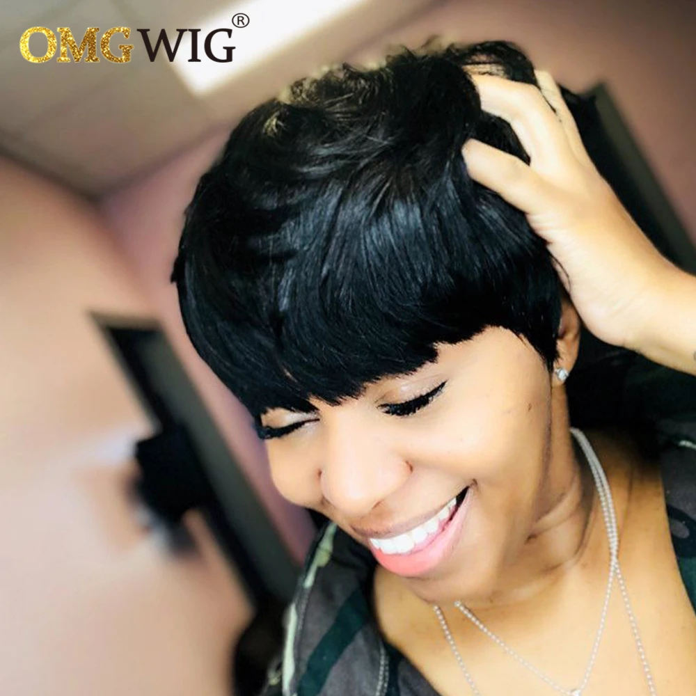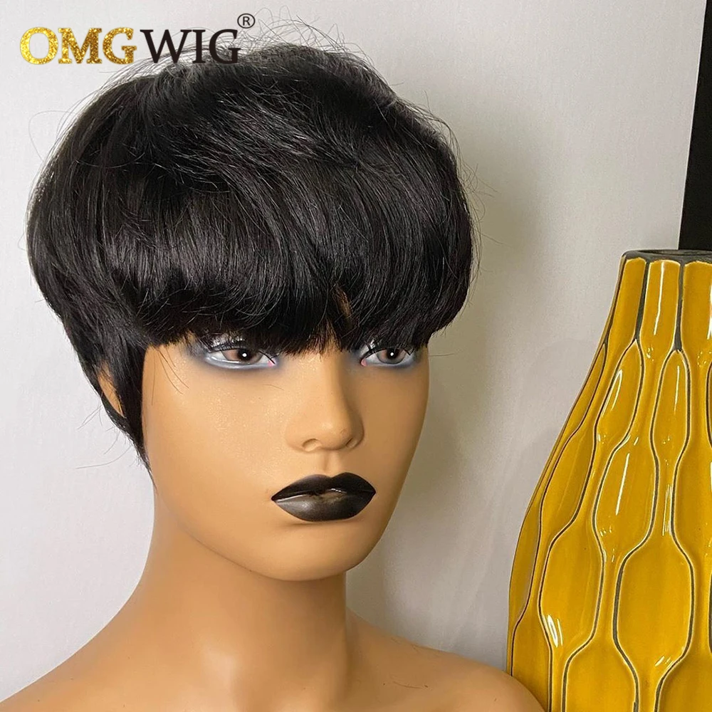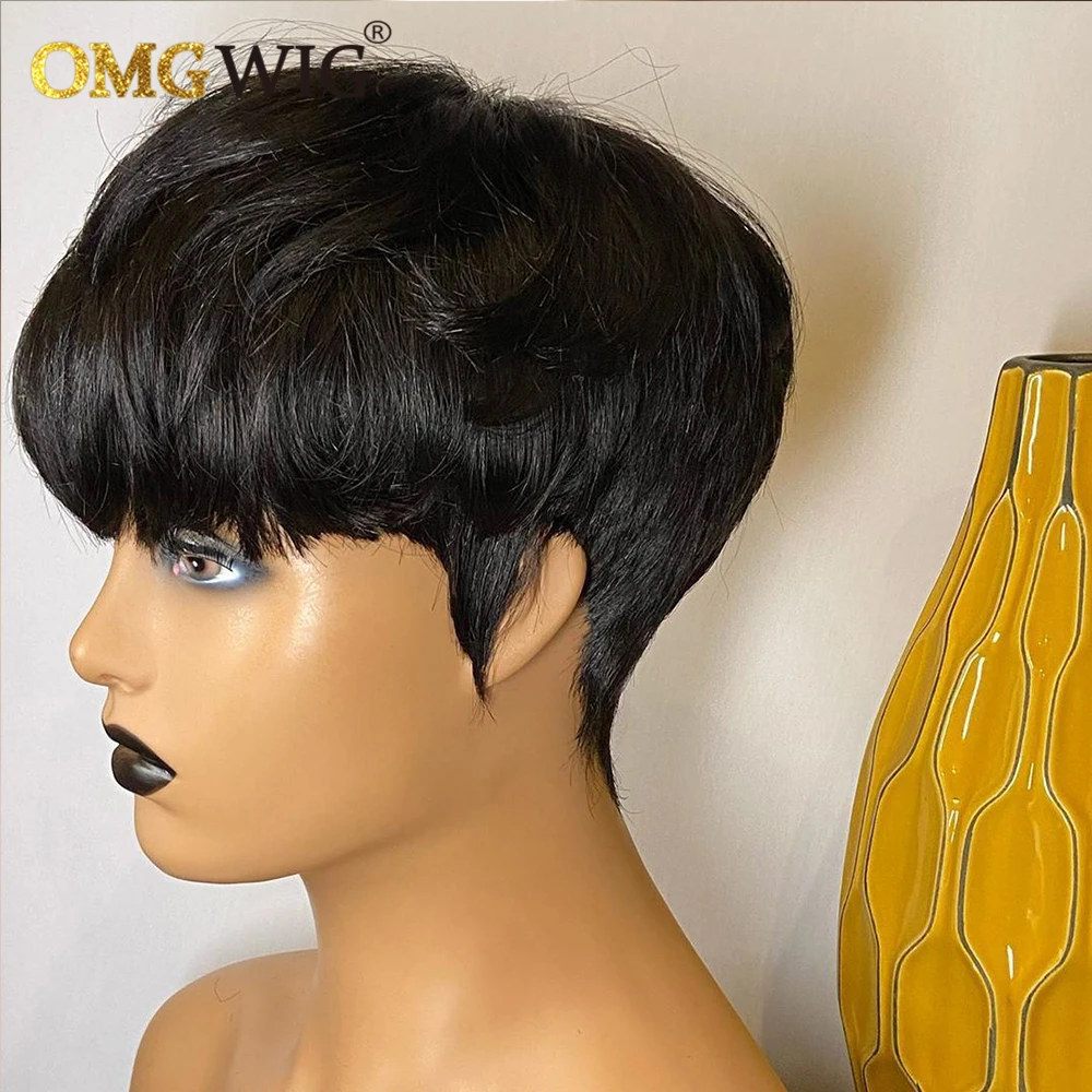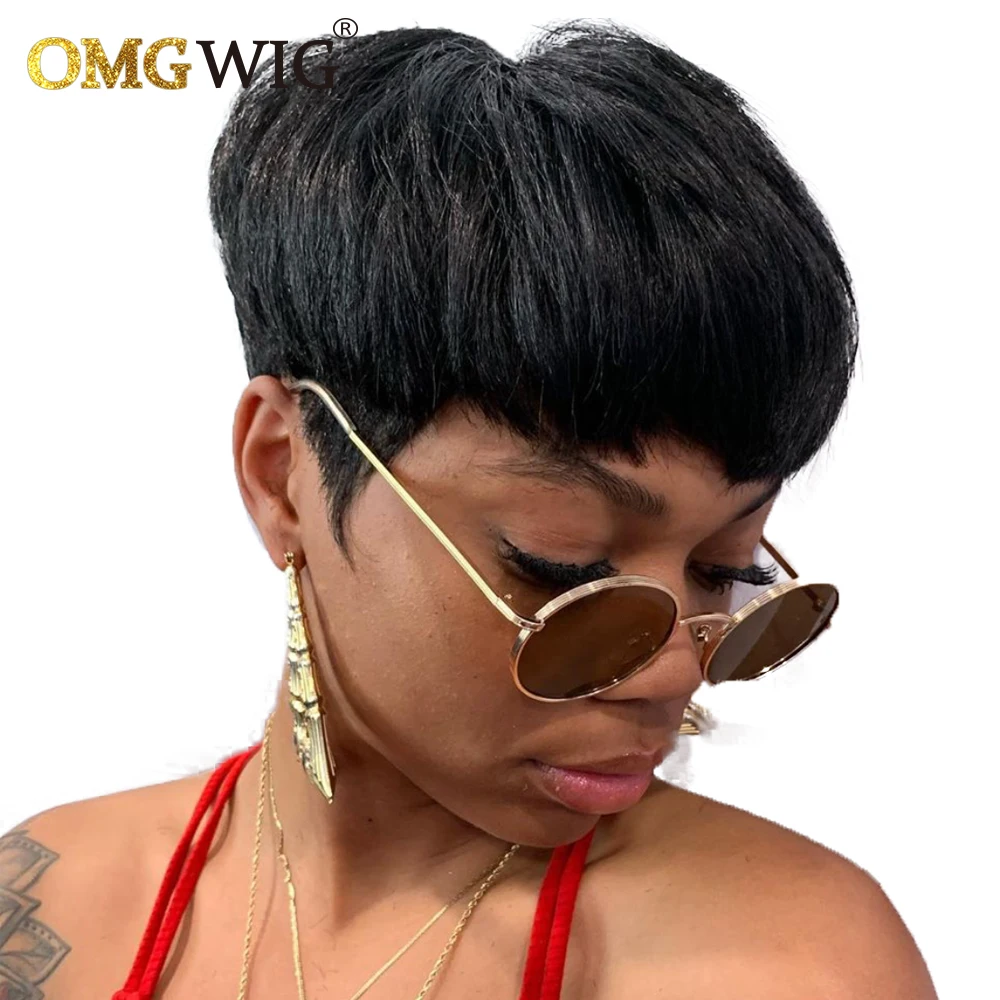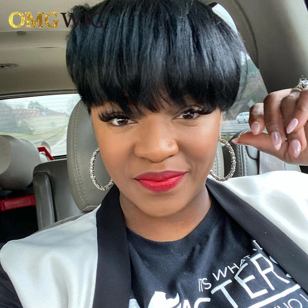 Короткие прямые волосы боб фальшивый срез кружева не передние человеческие волосы OMG парик с челкой для черных женщин Remy Предварительно выщипанные с детскими волосами
