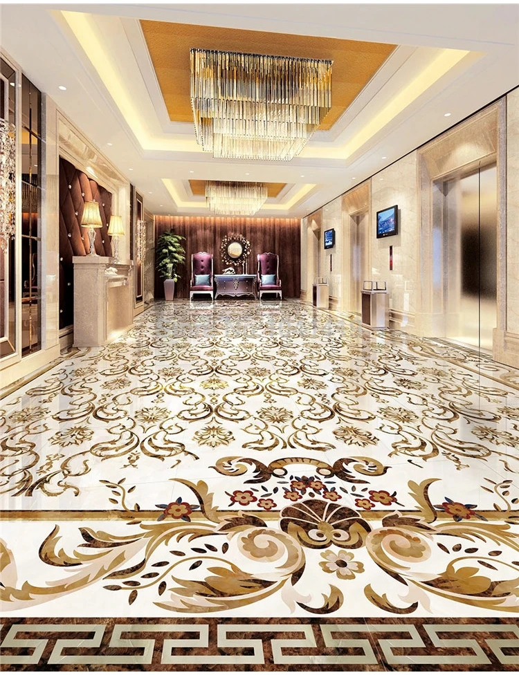 Самоклеящиеся напольные наклейки в европейском стиле, 3D узор, мраморная плитка, Настенные обои для гостиной, отеля, роскошные обои из ПВХ