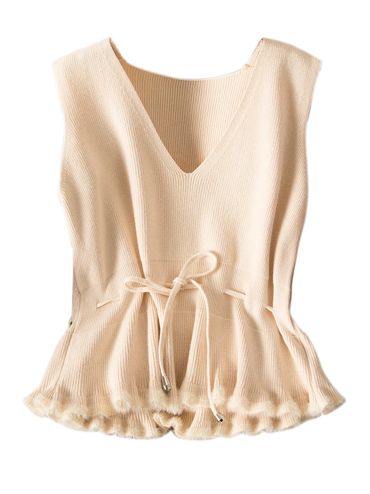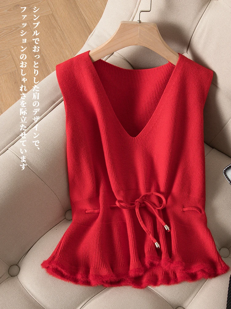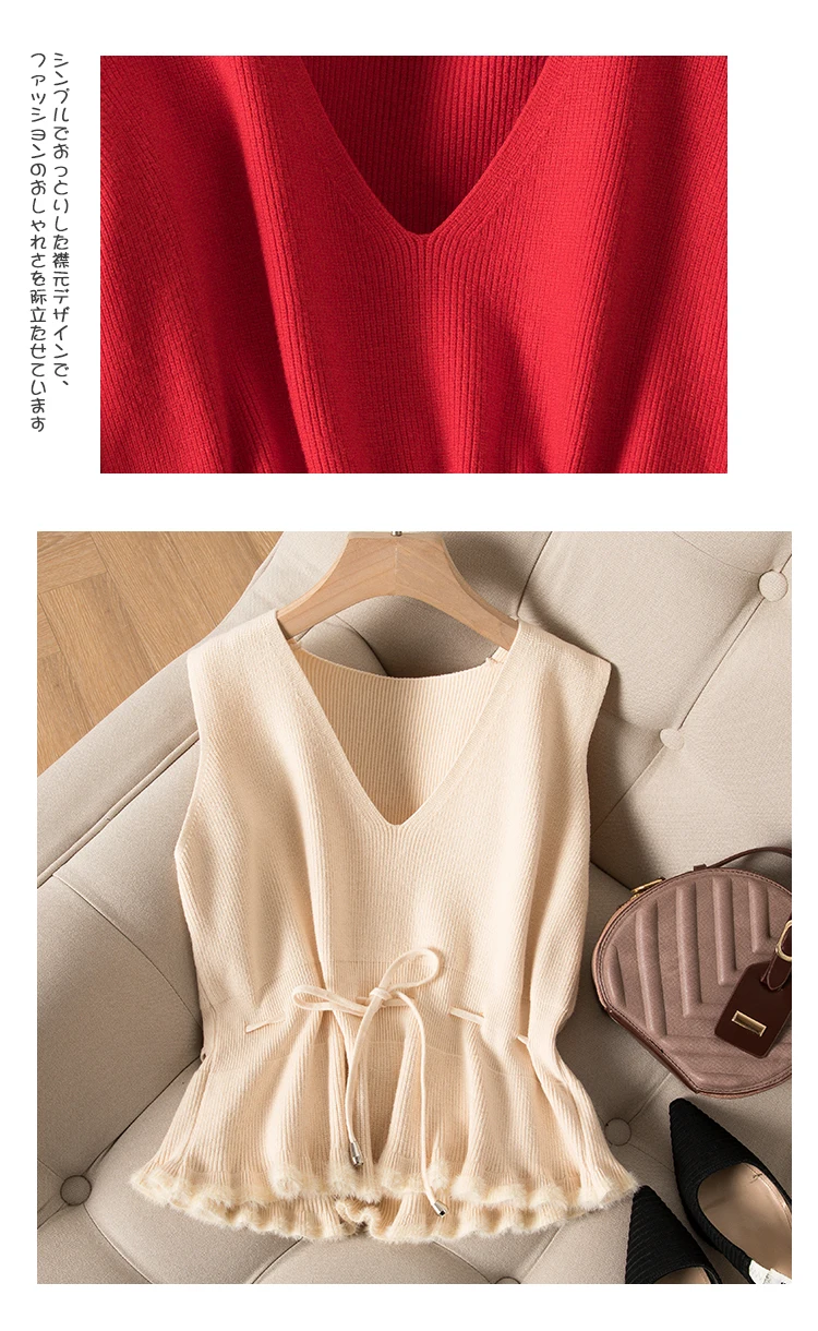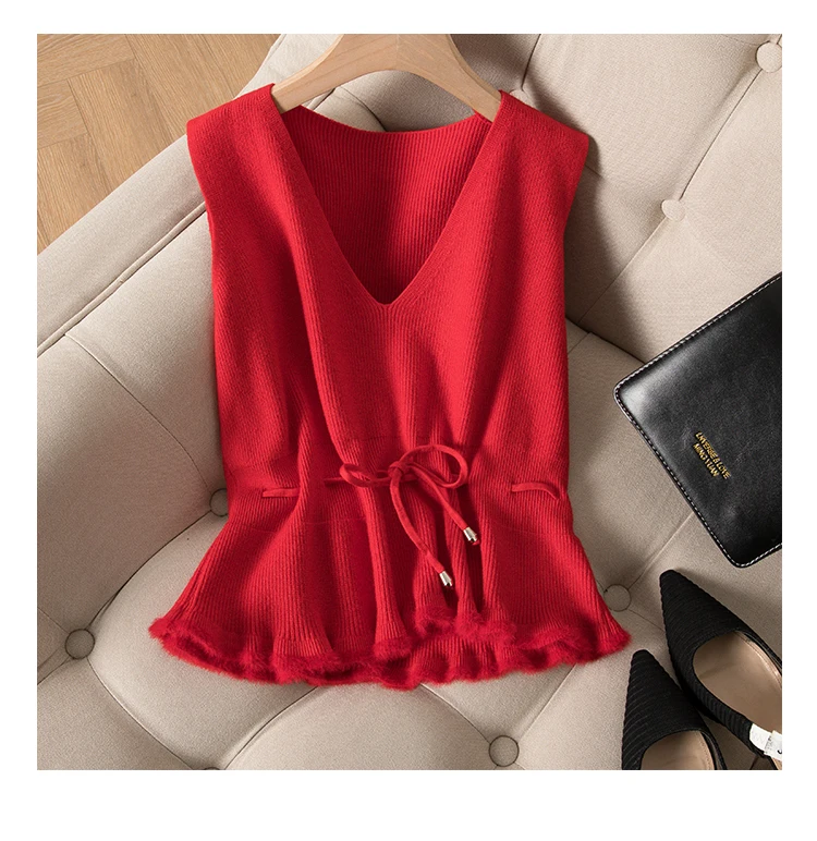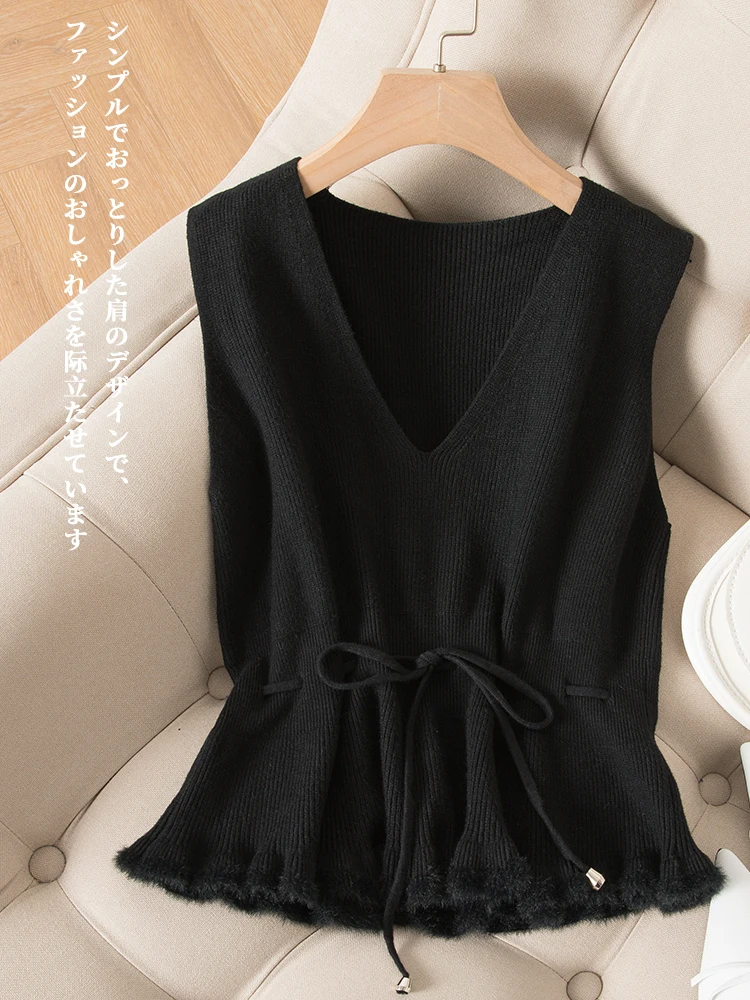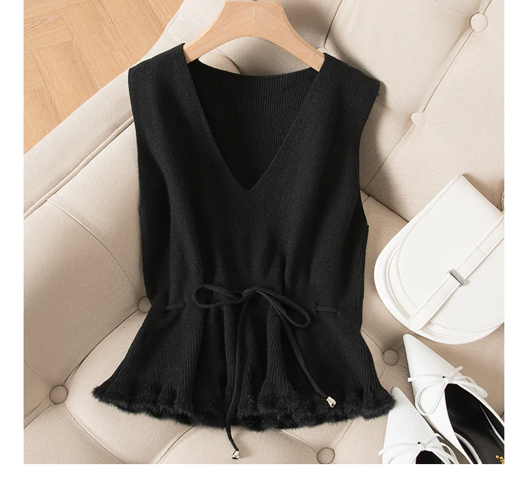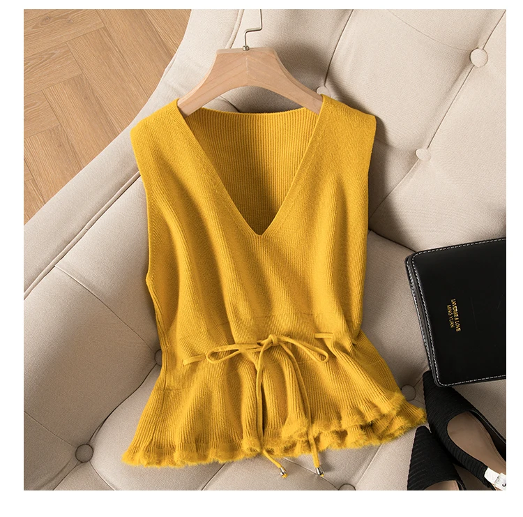 Женский кашемировый пуловер с v-образным вырезом, трикотажный однотонный черный жилет без рукавов, Повседневный свитер в Корейском стиле, весна-осень 2020