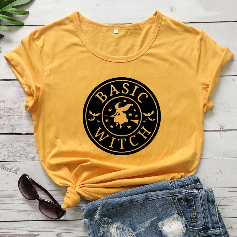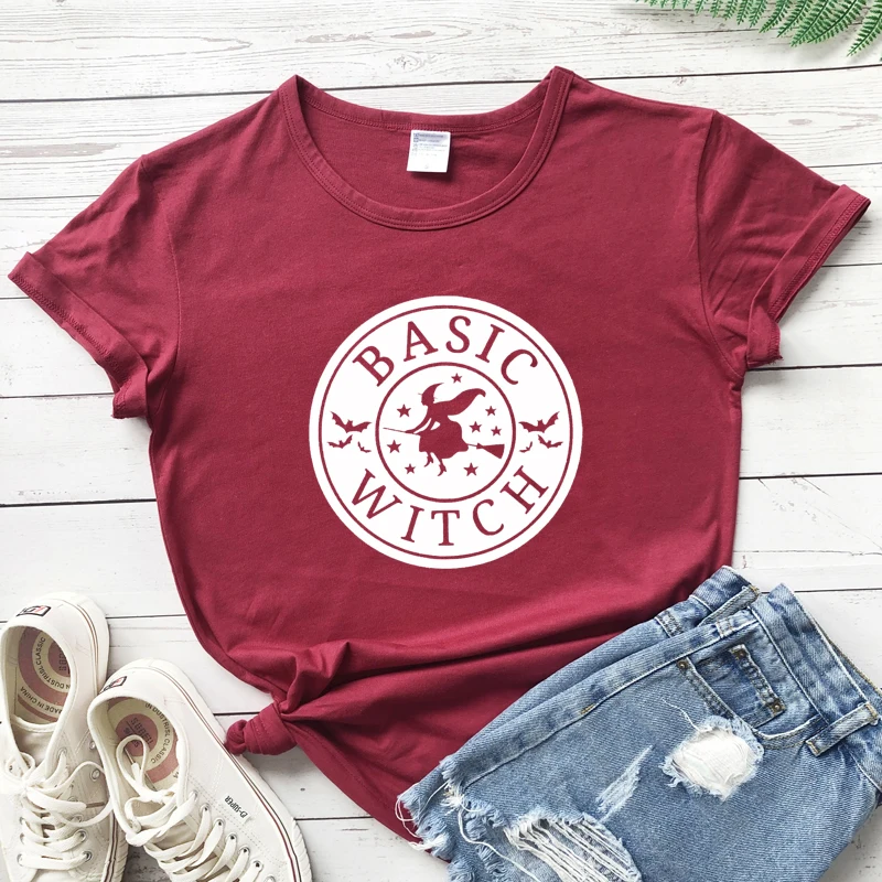 Футболка женская, с рисунком ведьмы, Хэллоуин, с изображением черно...
