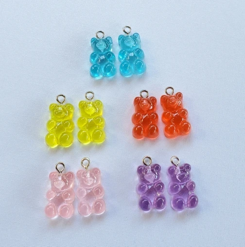 Милые Подвески в виде медвежонка, кабошоны из смолы, блестящие жевательные конфеты, прозрачные подвеска для ключей, на шею, аксессуары для самостоятельного изготовления, P62, 10 шт.