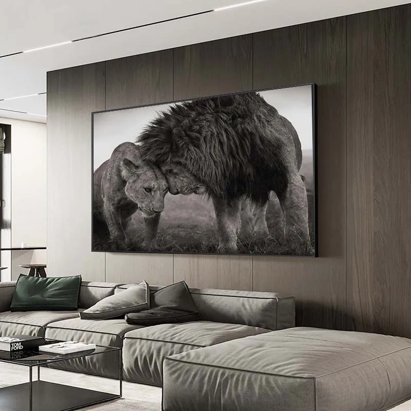 Настенная картина с изображением Льва с головой к голове, черно-бел...