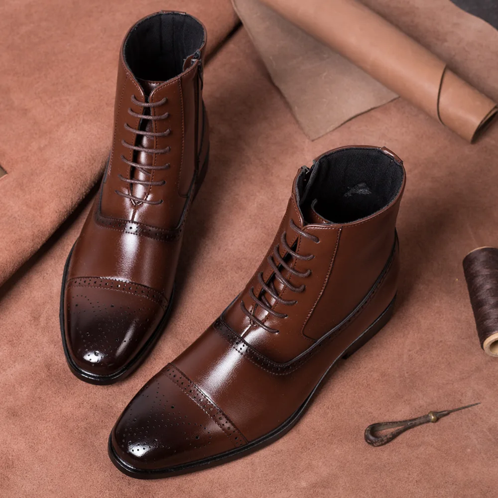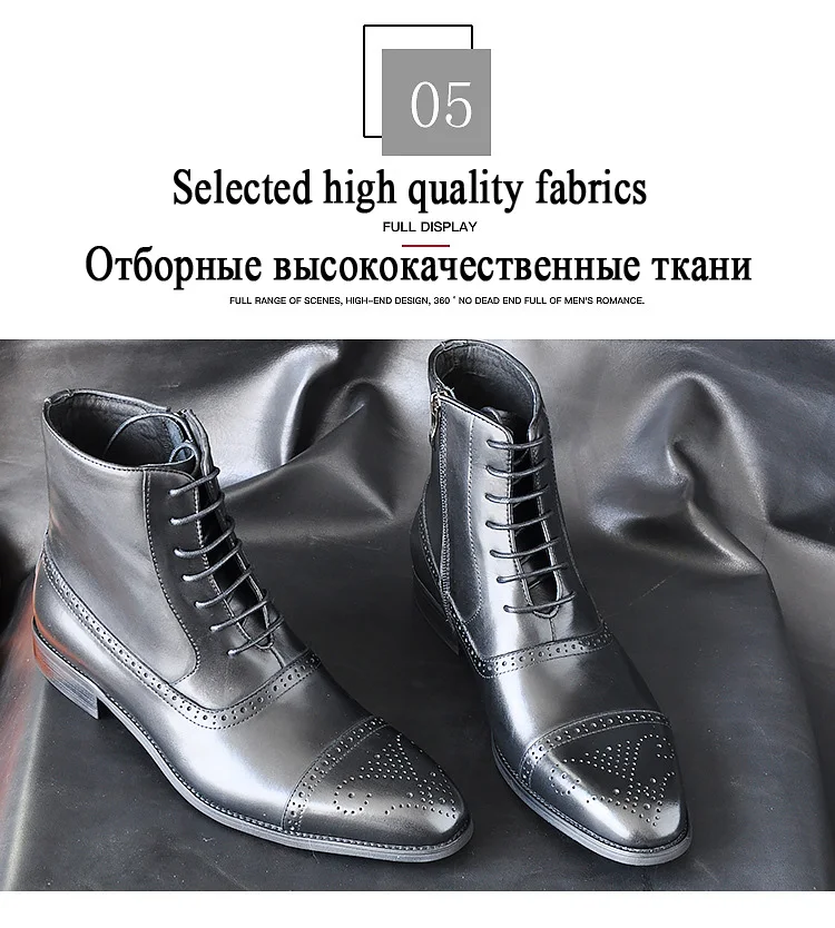 Мужские ботинки на шнуровке, с боковой молнией и перфорацией