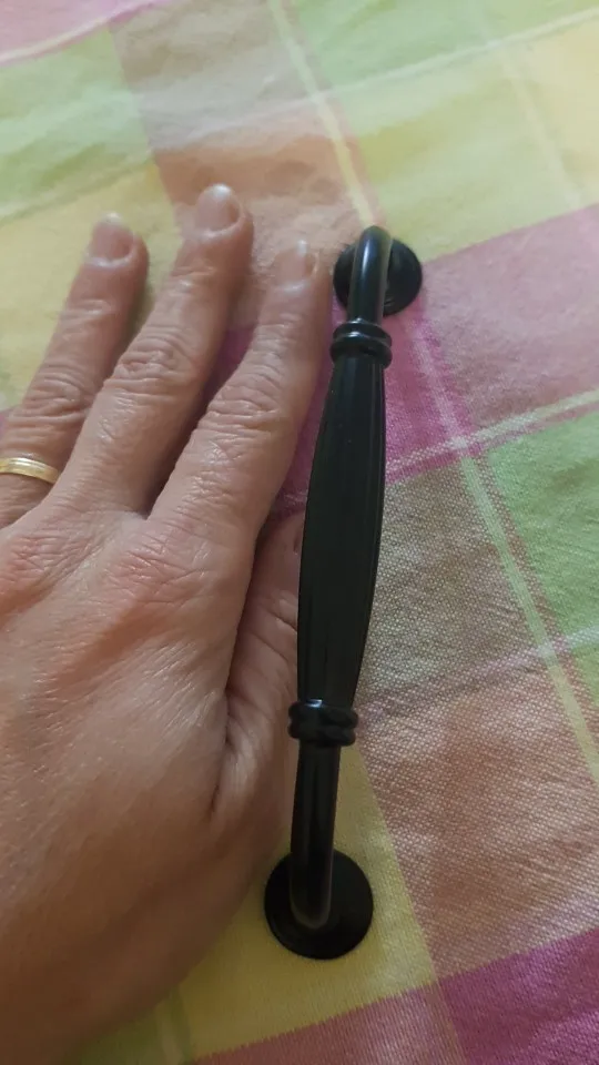 Хороший продукт Я получил ручки за 4 дня до назначенной даты. Ручки соответствуют описанию. Размеры хорошие. Они очень легкие, но выглядят солидно. Чтобы вовремя увидеть свой наряд. Я заменил все ручки на своей кухне, и я очень доволен итетом. Ручки поставляются с винтами.