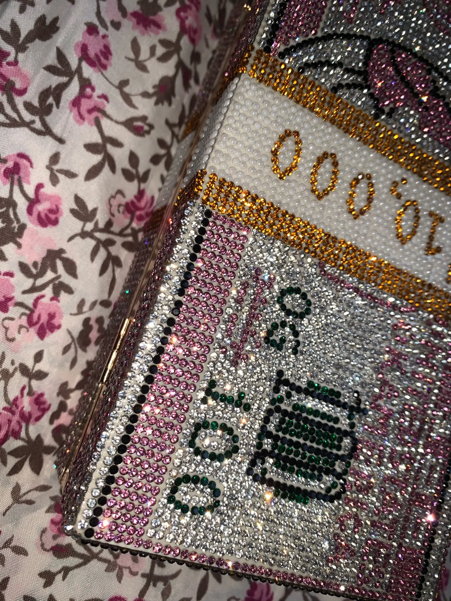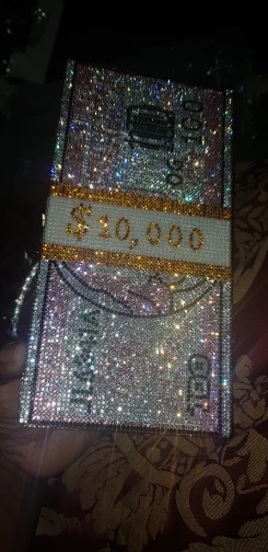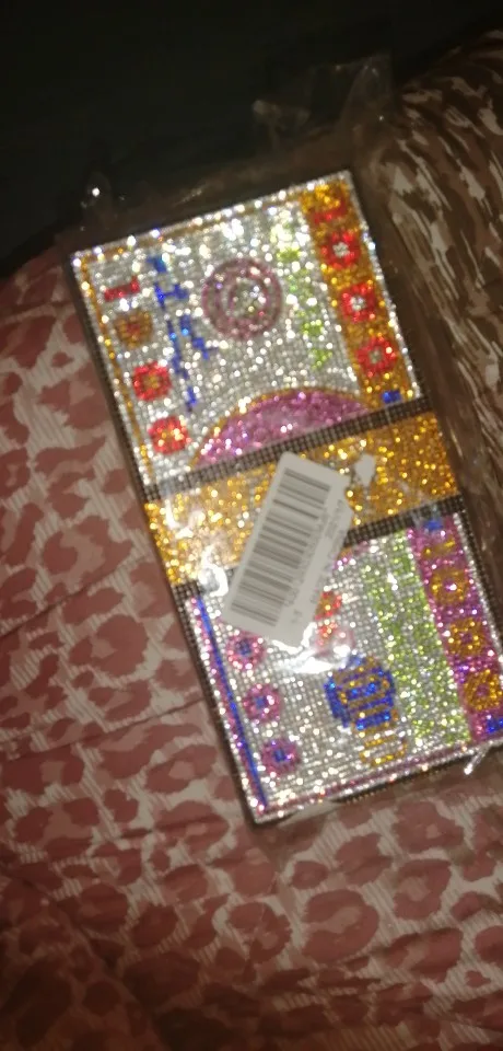 Он пришел в течение 5 дней, пахнет немного странным, но это из-за клея, используемого для драгоценных камней, и он также немного липкий. Я на самом деле удивлен, что он такой большой и имеет достаточно места, чтобы соответствовать вещам.