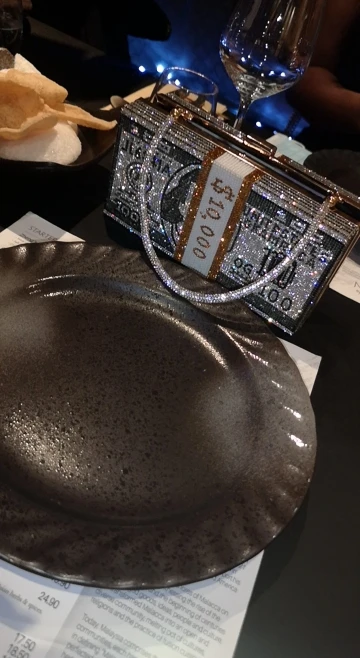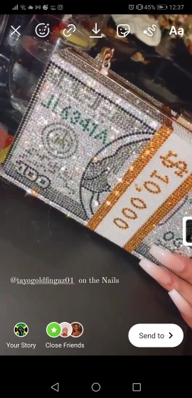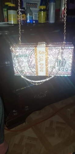 Сумка абсолютно Великолепная и очень блестящая в естественном освещении! Он пришел через месяц, он пахнет как пластиковый слот, но просто дайте ему немного и распылите парфюм внутри, и вы хороши