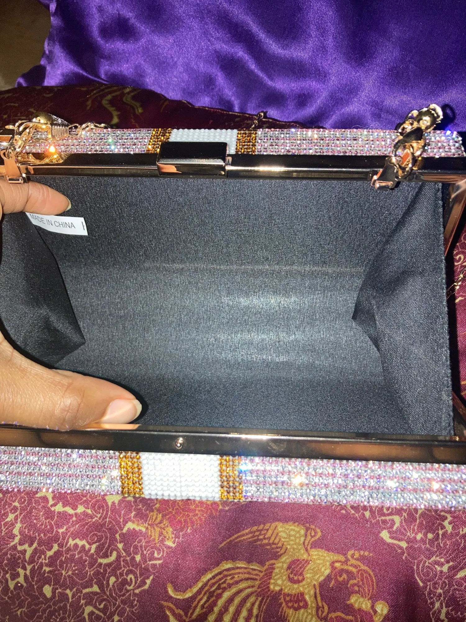 Это моя вторая покупка, и я планирую получить еще пару. Мне нравится дизайн и побрякушки этого клатча. Кроме того, он не слишком маленький, но просто идеальный размер для моего телефона, помады и ключей.