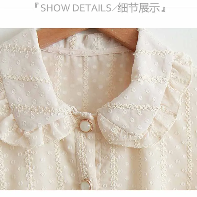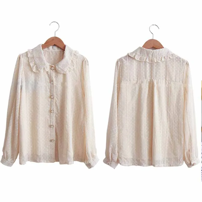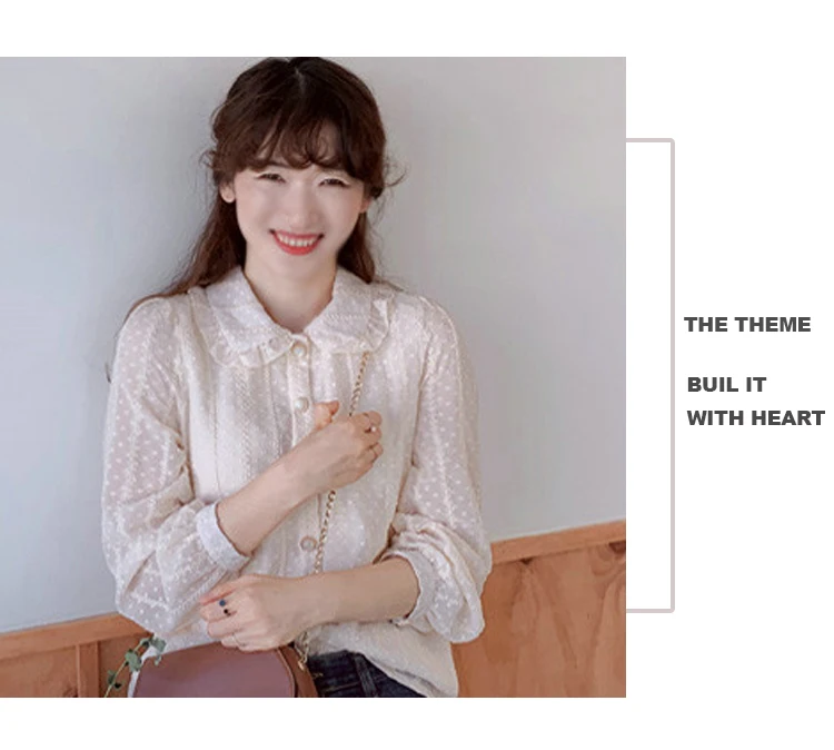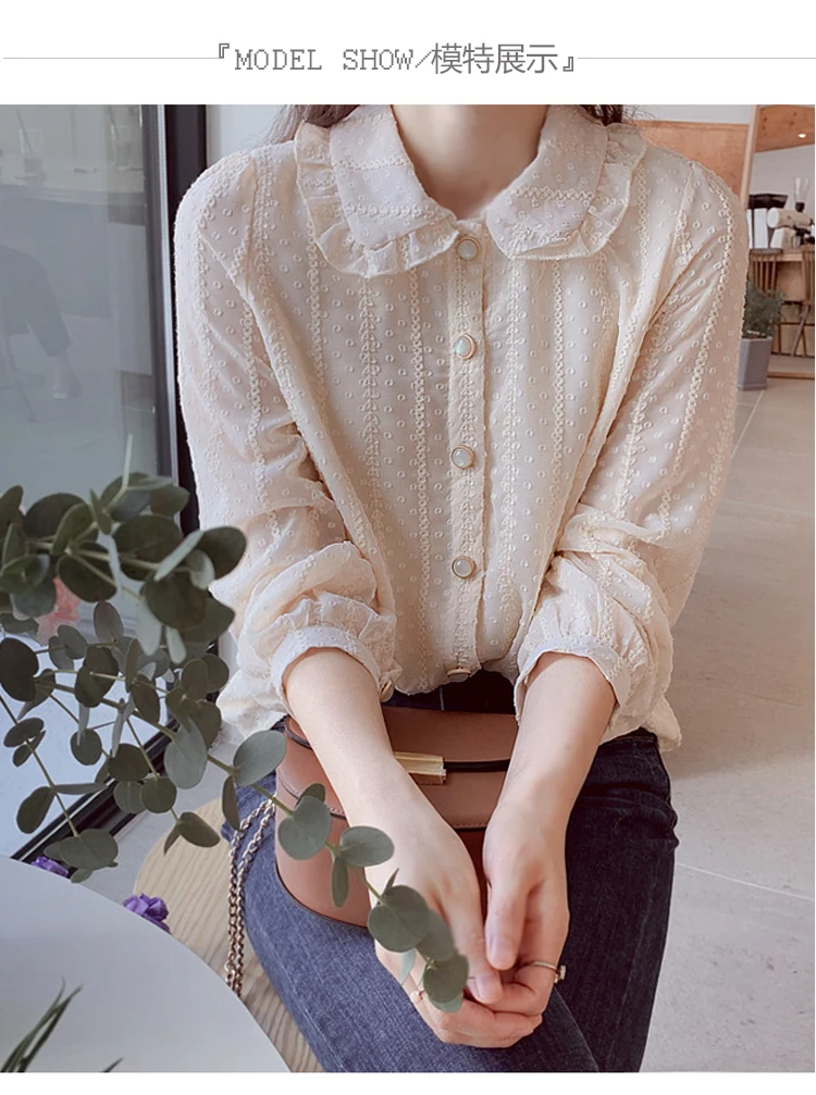 2021 Осенняя Милая шифоновая блузка для женщин с воротником Питер Пэн Женская рубашка с длинным рукавом Женские рубашки в Корейском стиле Топы Блузы 10351
