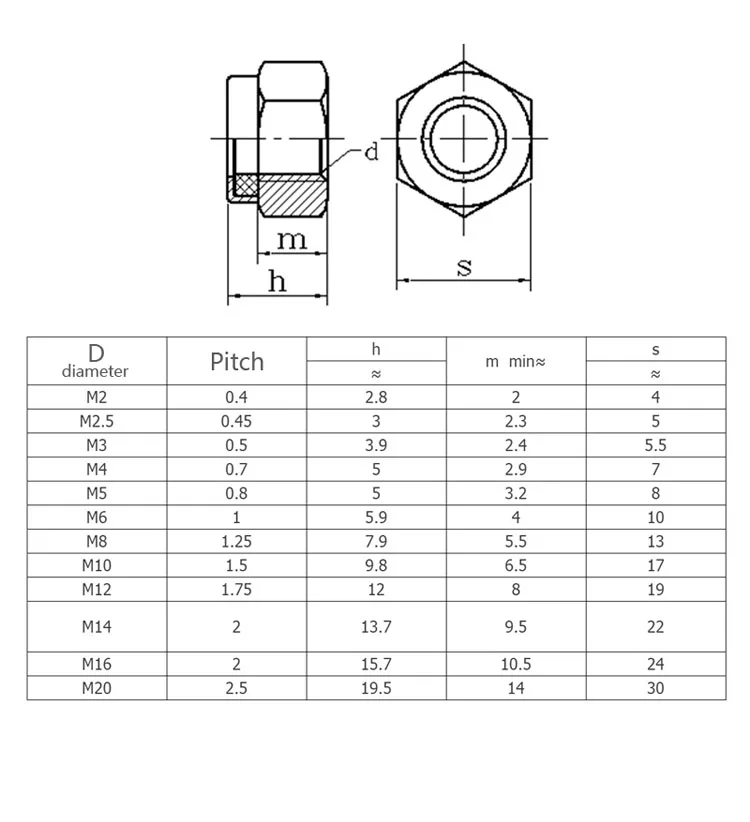 250 шт. M2 M2 M2 M2, 5 _ M16 304 Шестигранная нейлоновая вставка из нержавеющей стали, фиксирующая гайка, самоблокирующаяся гайка Nylock, Контргайка