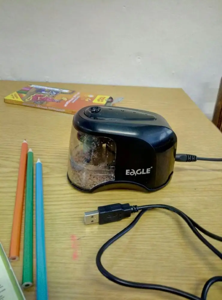 Точилка хорошая карандаши точит замечательно, работает как от батареек так и от usb. Немного не хватает мощности мотора, чуть сильнее нажмёшь на карандаш мотор начинает глохнуть. Качество исполнения на 4.