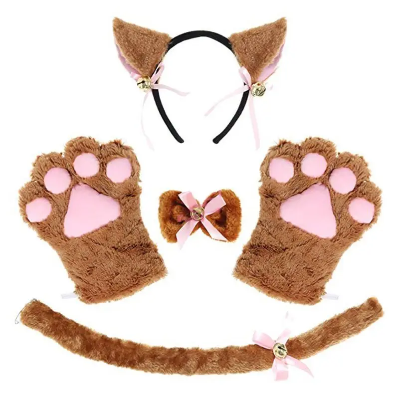 Воротник с кошачьими ушками и хвостом для косплея, перчатки с кошач...