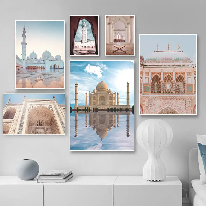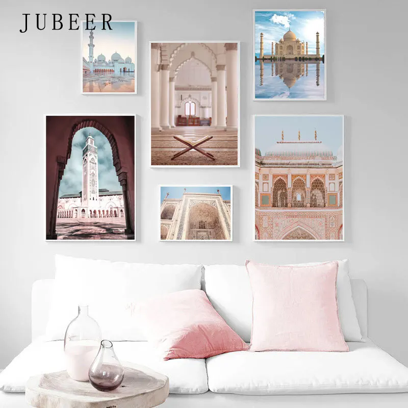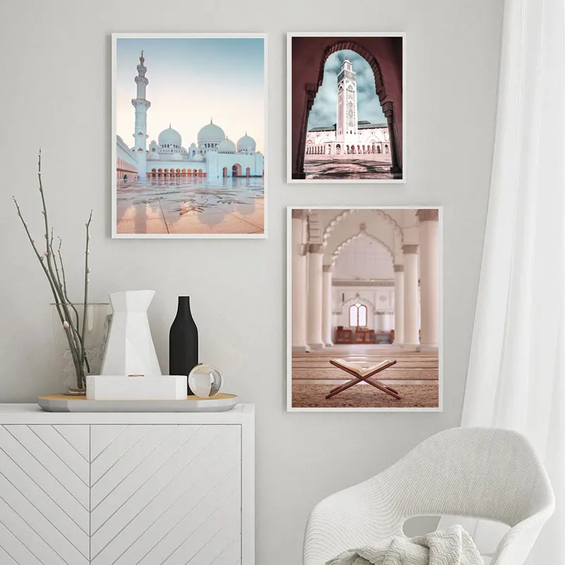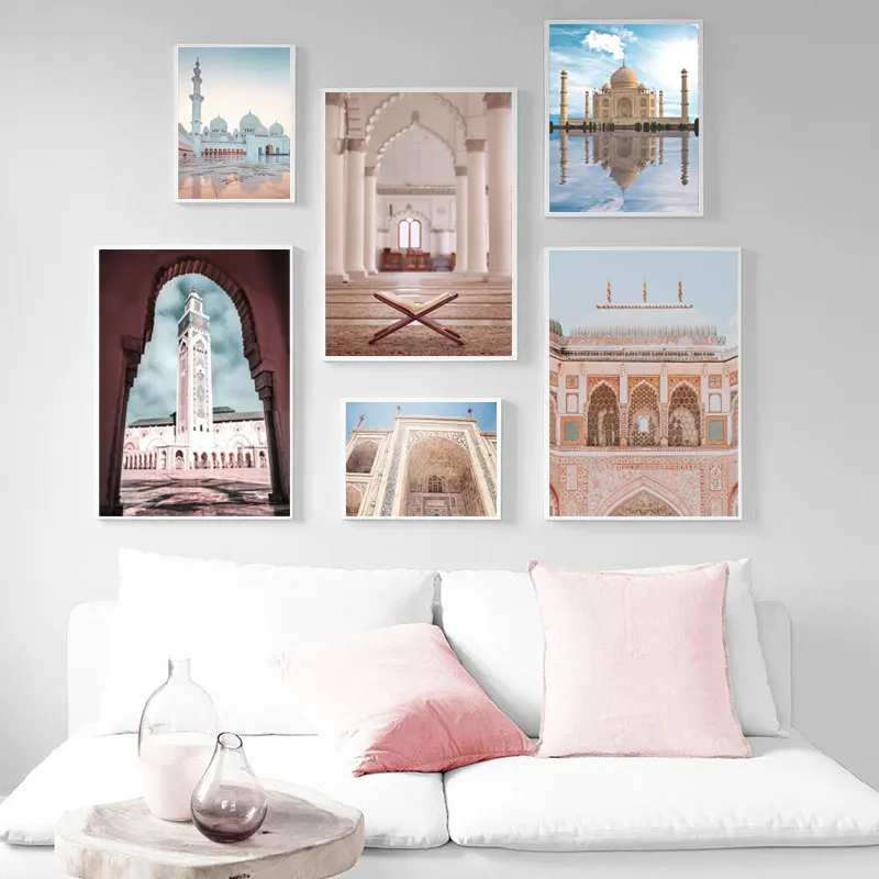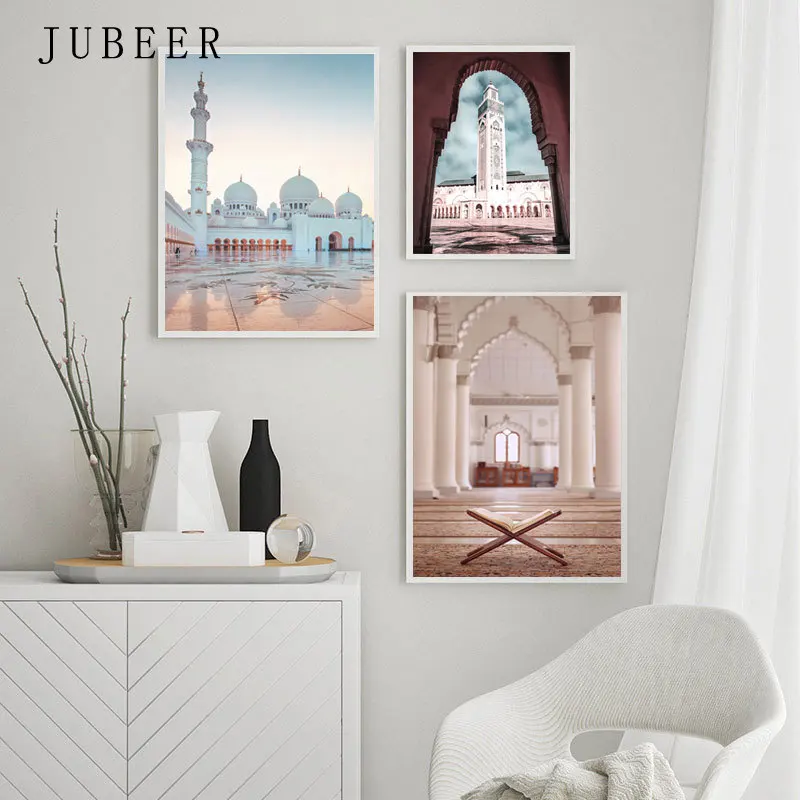 Марокканская АРКА, холст, живопись, искусственная кожа, плакат, мечеть Хасан II, Sabr Bismillah, печать, арабское мусульманское украшение, картина