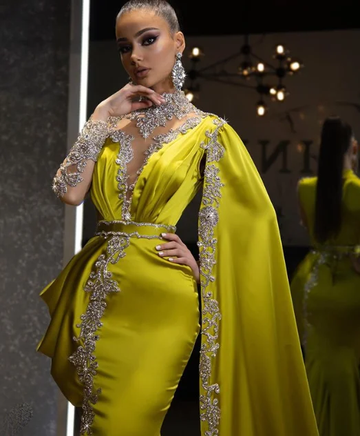Длинное вечернее платье с длинным рукавом, украшенное бисером, в арабском стиле, с юбкой-годе из Дубая, 2020