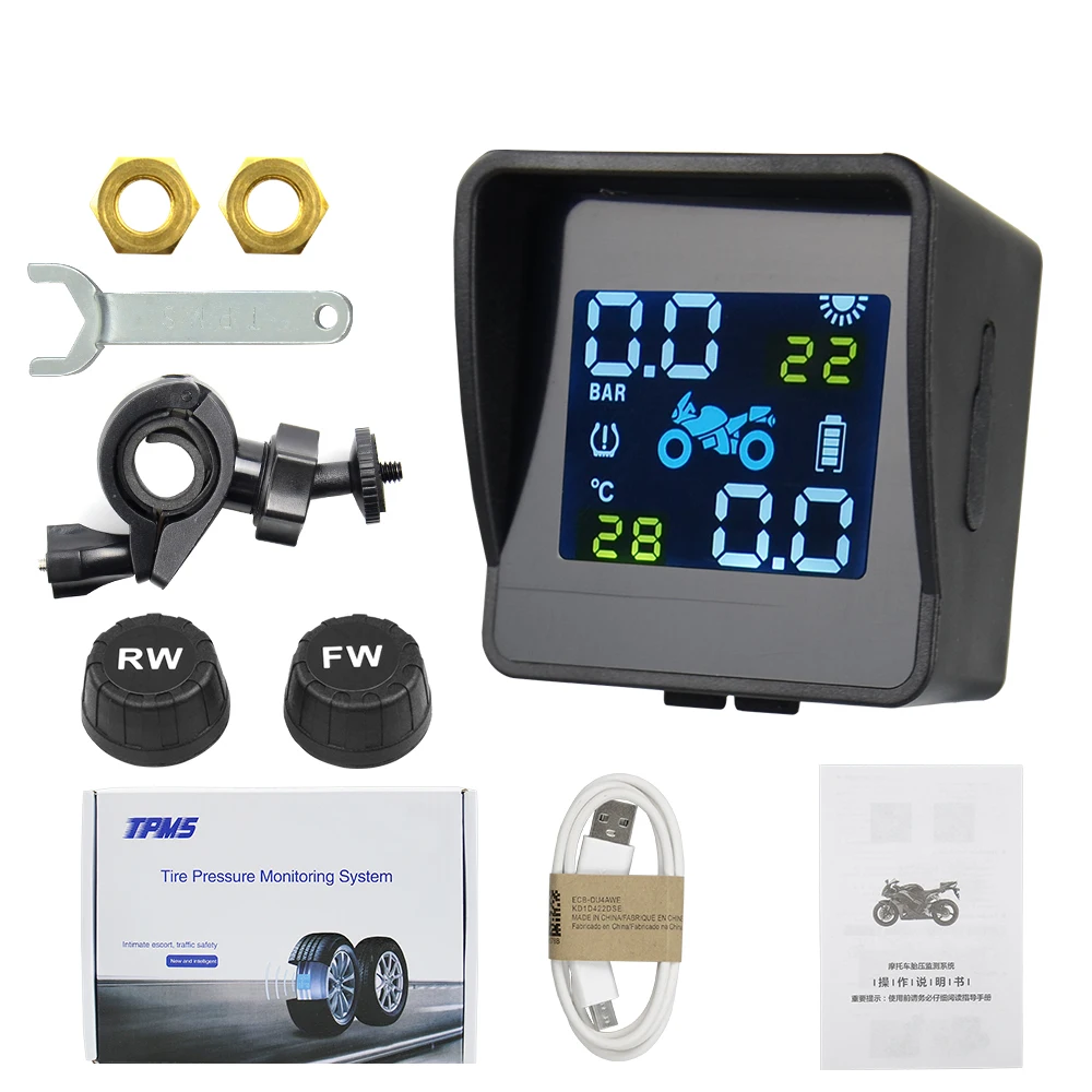 Система контроля давления в шинах, с солнечной зарядкой, с 2 внешними датчиками