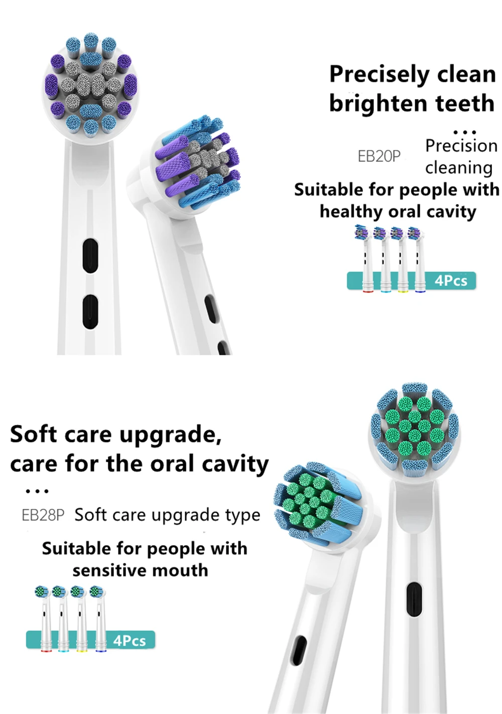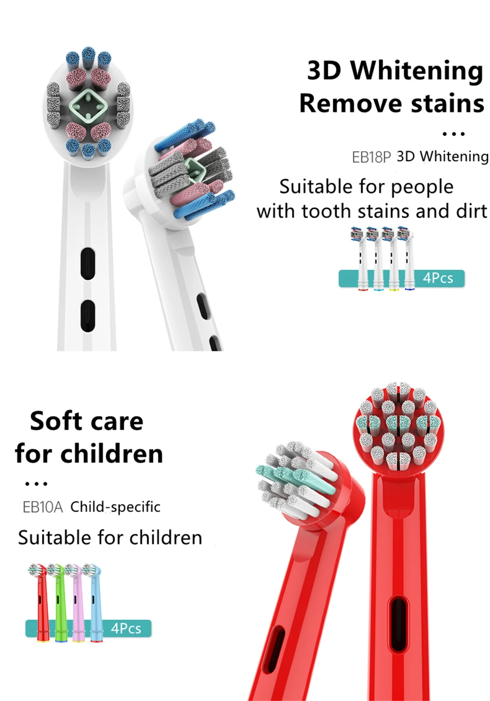 Зубные щетки пришли целые как в описании. Но обратите внимание что для Braun Oral B подошло идеально только один набор. второй набор щеток немного другой разрез и подходят они не всем щёткам,но если надеть и не дергать то они отработают,все функционирует.На втором фото на мою базу щетки подходит идеально.