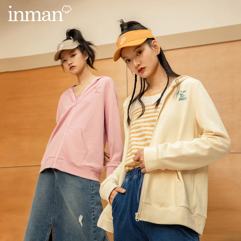 INMANосенне-зимняя однотонная повседневная спортивная Женская толстовка на молнии с большим карманом и вышивкой на английском языке