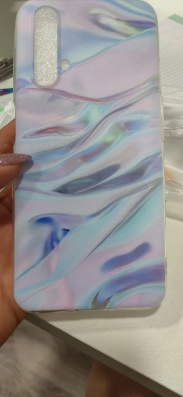 Красивый, не прозрачный, матовый чехол. Думала будет переливаться, но это просто напечатанная картинка