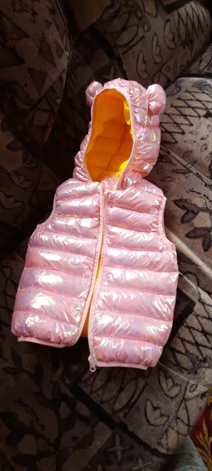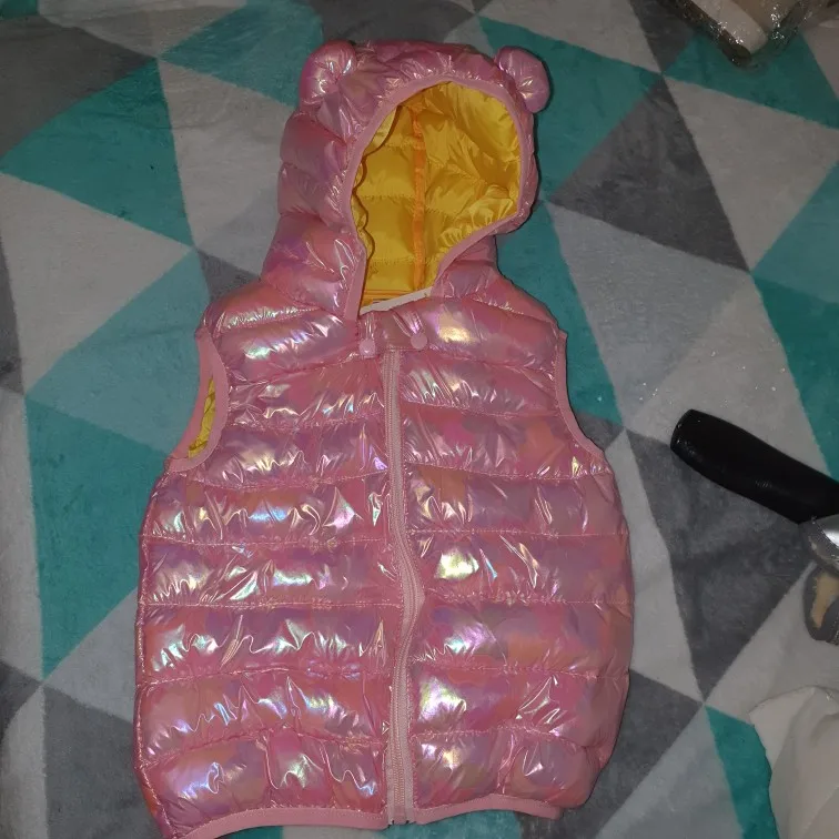 Очень хорошая жилеточка. Красивый перламутр. По размеру хорошо. На дочкины 104 взяла 3Т(110) с небольшим запасом чтобы попу прикрывало. Снизу по бедрам резиночка, т. е задувать не будет. Товаром очень довольна. Отправили очень быстро. Дешевле чем аналогичные в наших магазинах в 1.5 - 2 раза. Продавца рекомендую