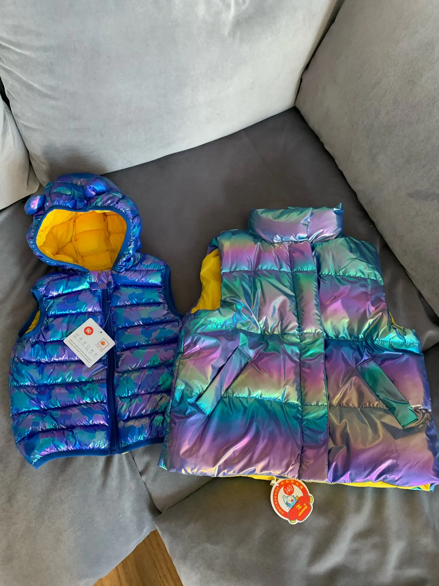 Посылочка пришла быстро,жилетки идут в размер! Рекомендую! Старшей на рост 122 заказала размер 8,а маленькой на рост 74 размер 18. Обе жилеточки с запасом,попу прикрывают. Единственное,жилетка побольше широковато,будет лучше на деток поплотнее.