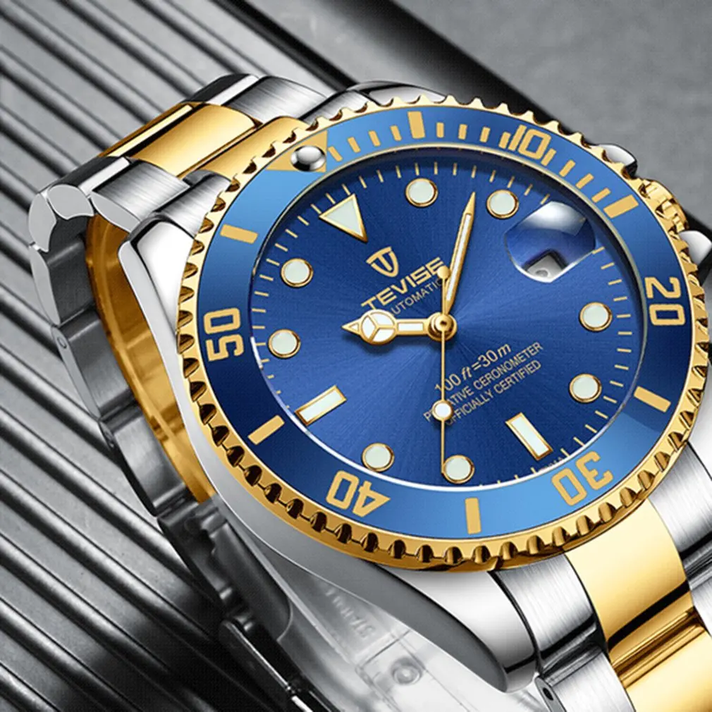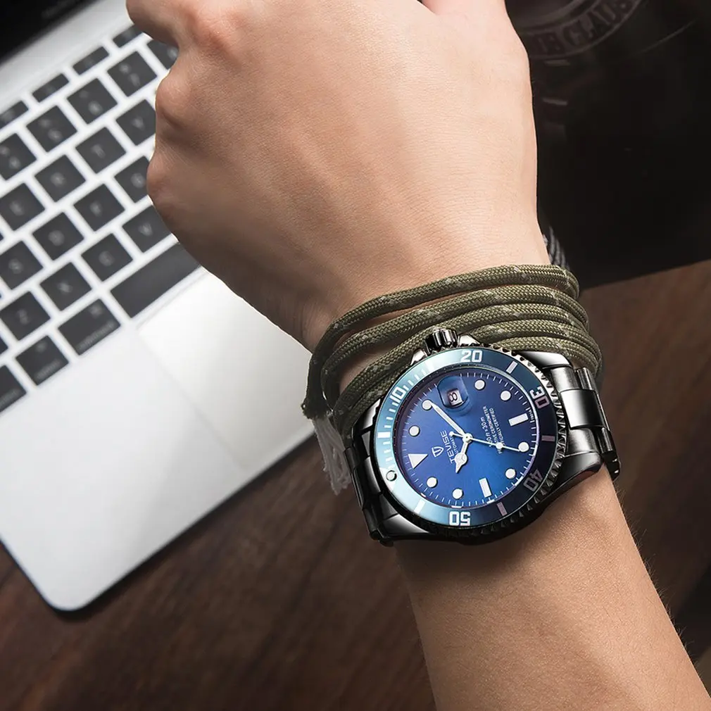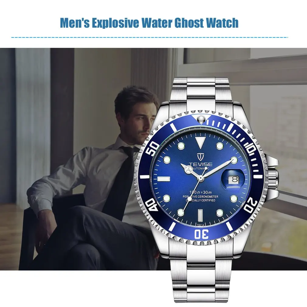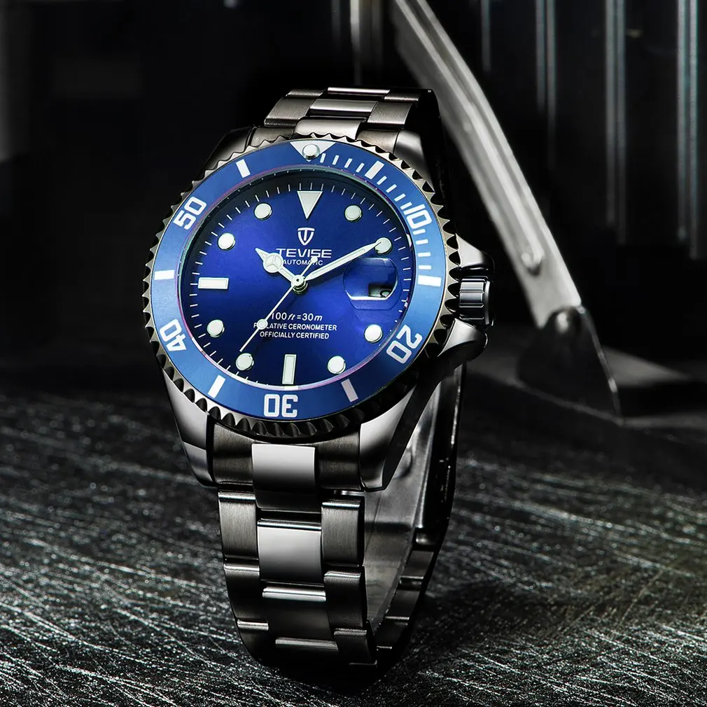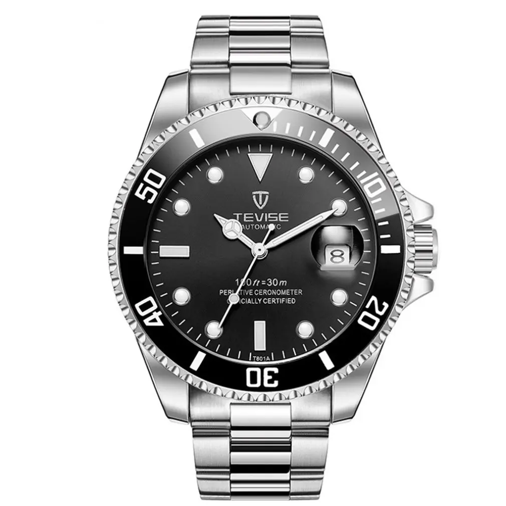 Мужские механические часы из нержавеющей стали, Черные Водонепроницаемые деловые часы с автоподзаводом, 2020