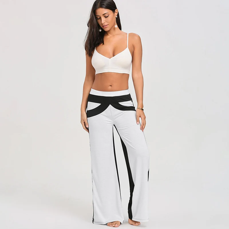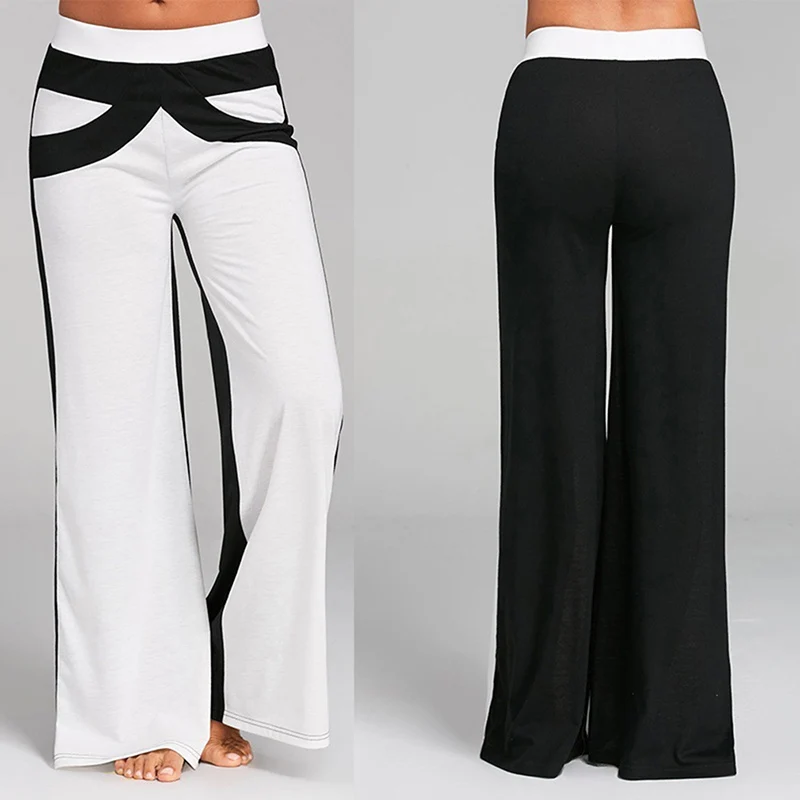 Лоскутные штаны с высокой талией, эластичные Широкие штаны для фитн...