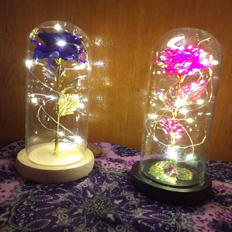 Искусственная вечная роза светодиодный Ной подсветкой красавица чудовище в стеклянном покрытии домашний декор на новый год День Святого Валентина Рождество День матери подарок