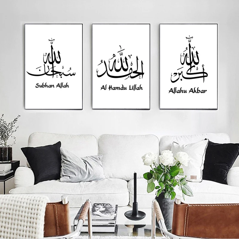 Мусульманский плакат с цитатами Bismillah, черно-белый Принт, насте...
