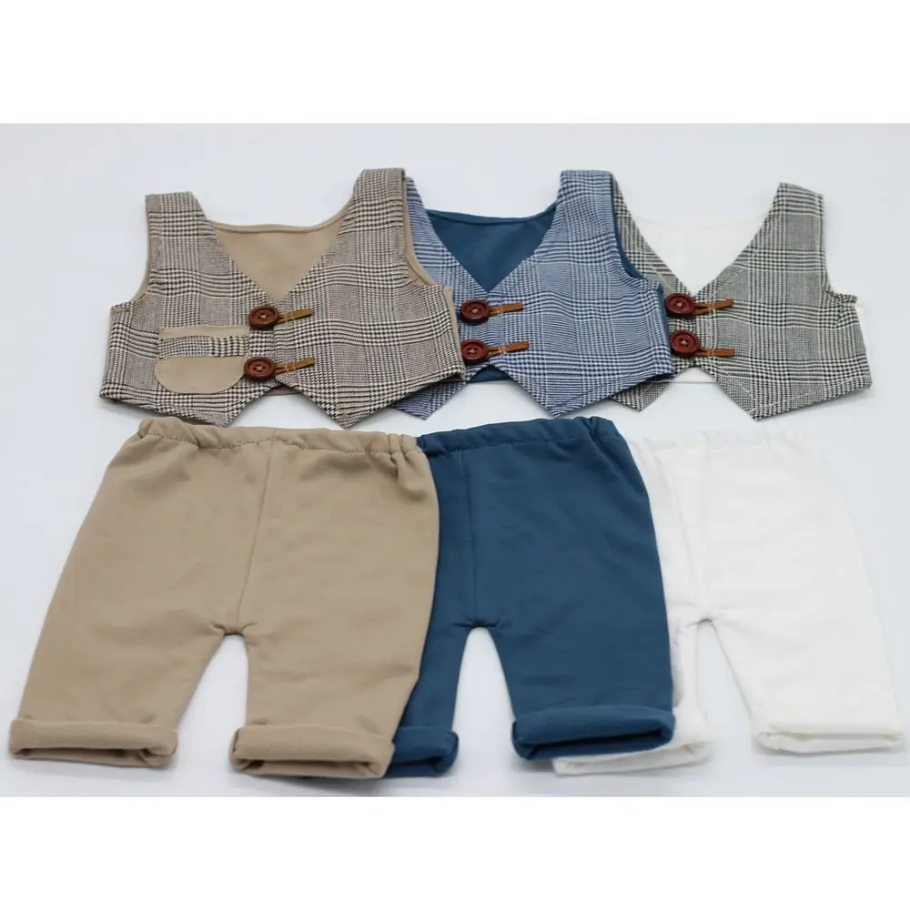 Комплект из жилета и штанов в клетку для новорожденных, мальчиков