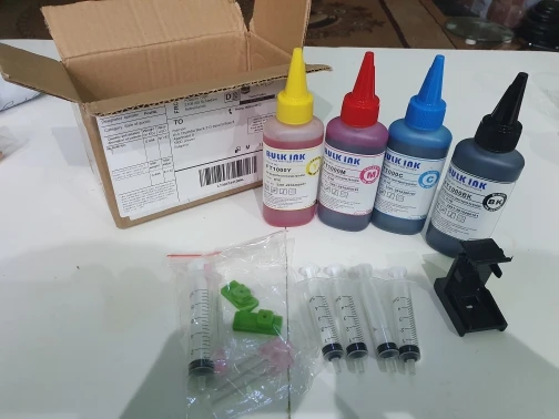2x 100 млЧерныйЧернила для бутылок 1x 100 млГолубойЧернила для бутылок 1x 100 млПурпурныйЧернила для бутылок 1x 100 млЖелтыйЧернила для бутылок 4 набора инструментов для пополнения