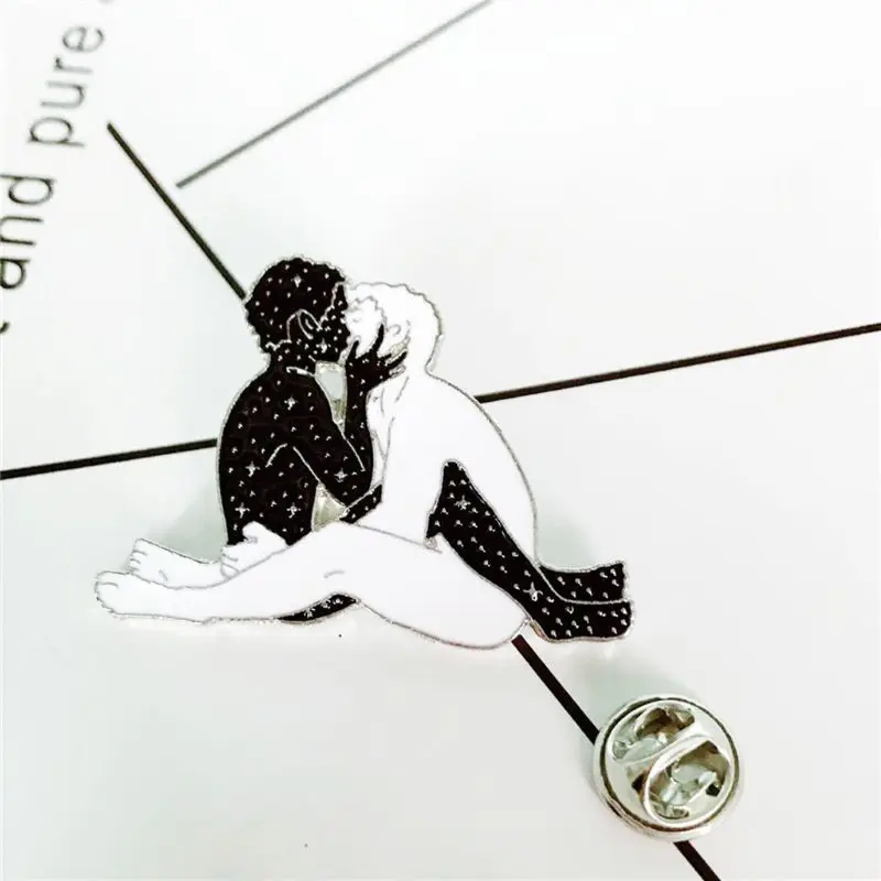 Мужские и мужские заколки для поцелуев, белая, черная брошь для любовников