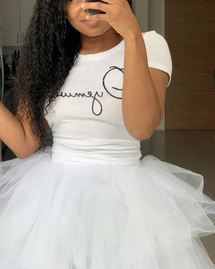 Изготовленное на заказ платье из тюля с оборками в несколько рядов ...