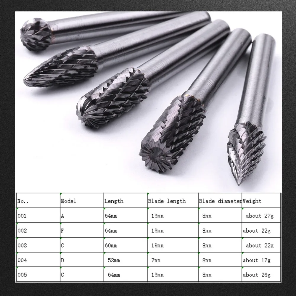 Роторные напильники из карбида вольфрама HRC70, хвостовик 6 мм, лезвие 8 мм, 1 шт.