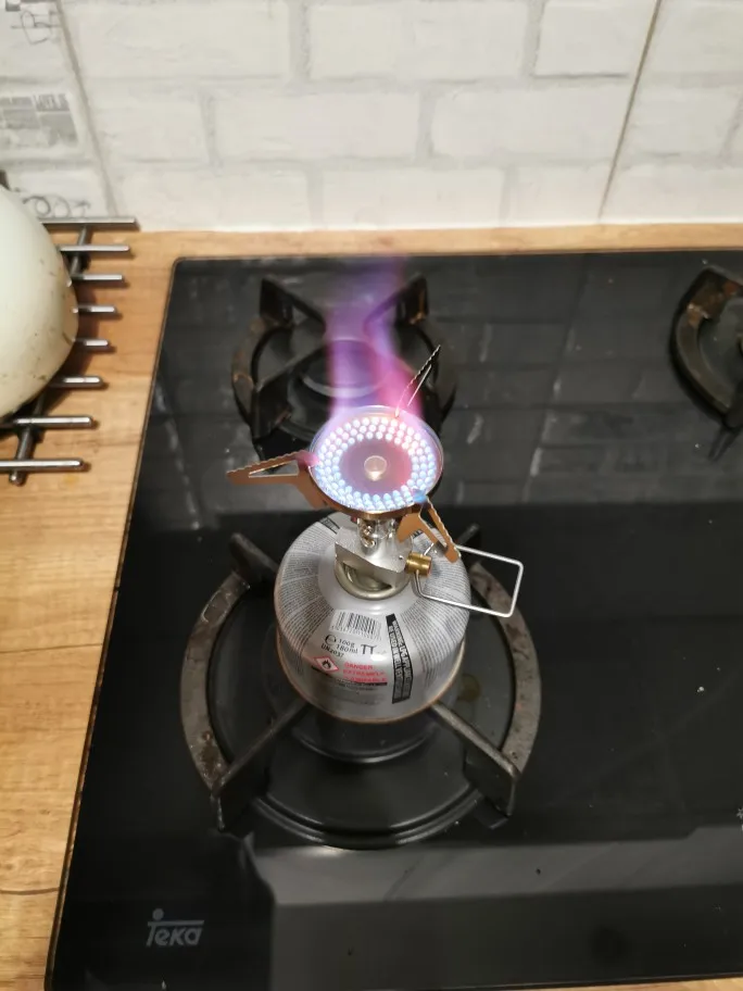 Хорошая и легкая печь. Всего 60 грамм. Очень тихий при горении. Пламенная точка хорошо подходит для небольших горшков, но все равно достаточно широкая, чтобы распределить тепло. Необходимо прикрутить на канистры очень плотно, чтобы не допустить протекания газа на резьбе. Время покажет, как долго будет служить подставка для горшка. Я могу себе представить, что это слабые части. Но все равно отличное предложение;-)