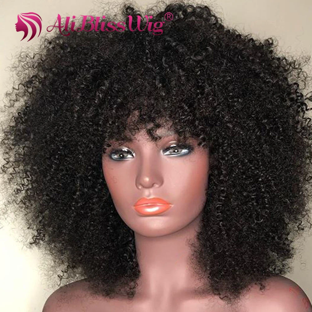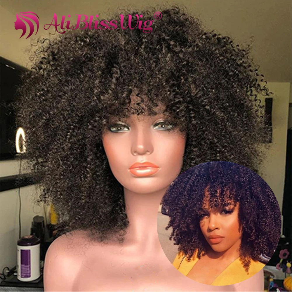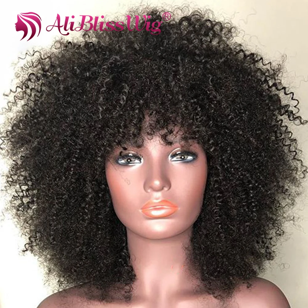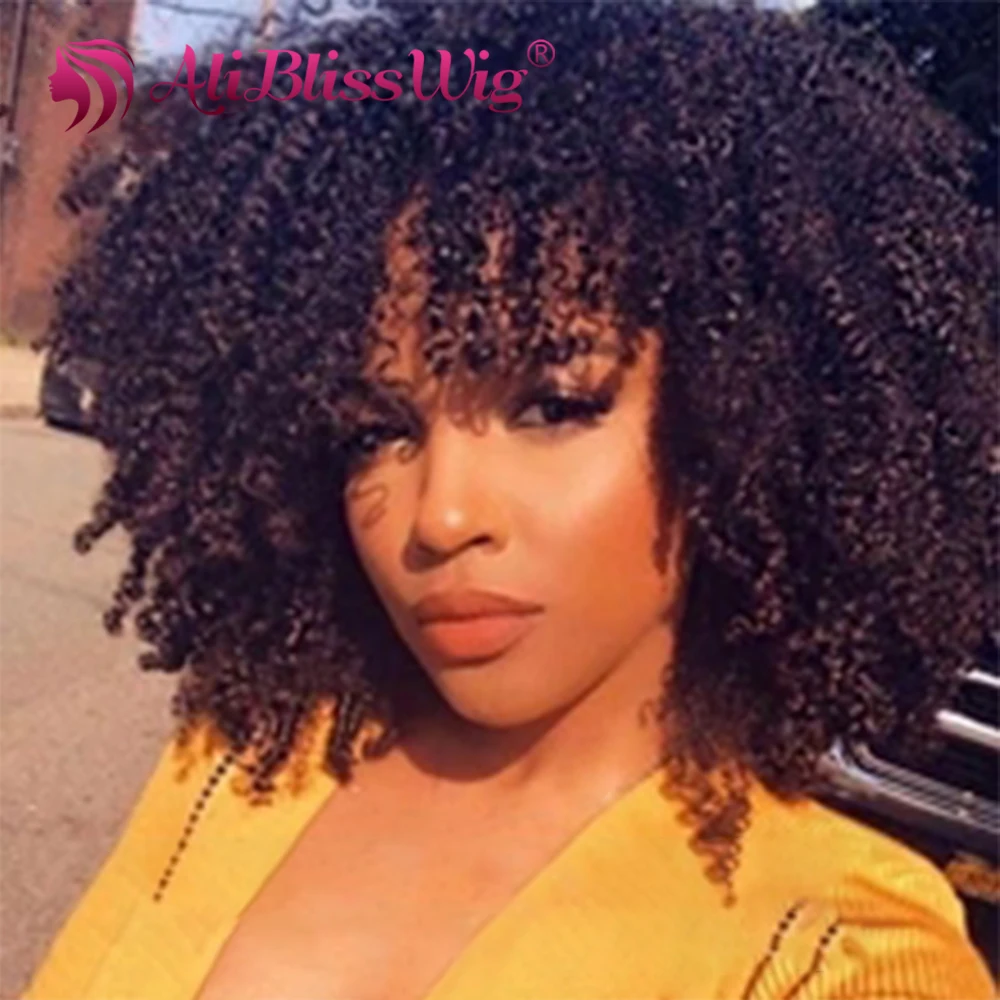 Парики для чернокожих женщин, вьющиеся натуральные волосы с челкой, бразильские кудрявые, полностью автоматические AliBliss