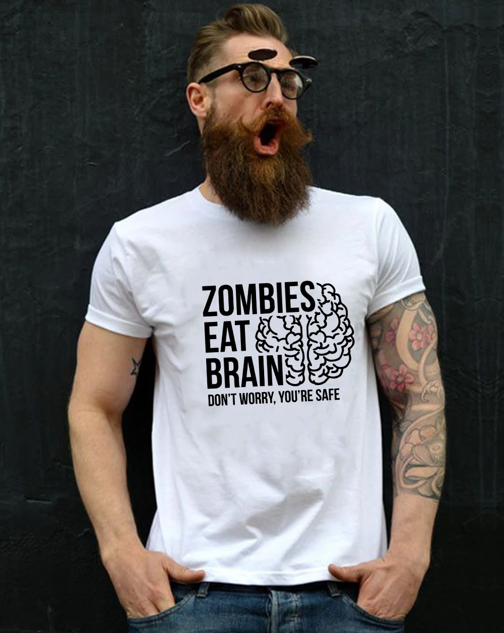Мужская футболка с принтом зомби Eat Brains You're Safe, летняя повседневная забавная одежда, футболки для мужчин Harajuku, топы футболки с графическими принтами для мужчин