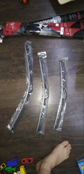 Все как и заявлено, три штуки, но пластик на креплении очень хлипкий,мягкий. Надо аккуратно открывать и одевать на место. Пока не использовала, старые дворники еще хорошие.