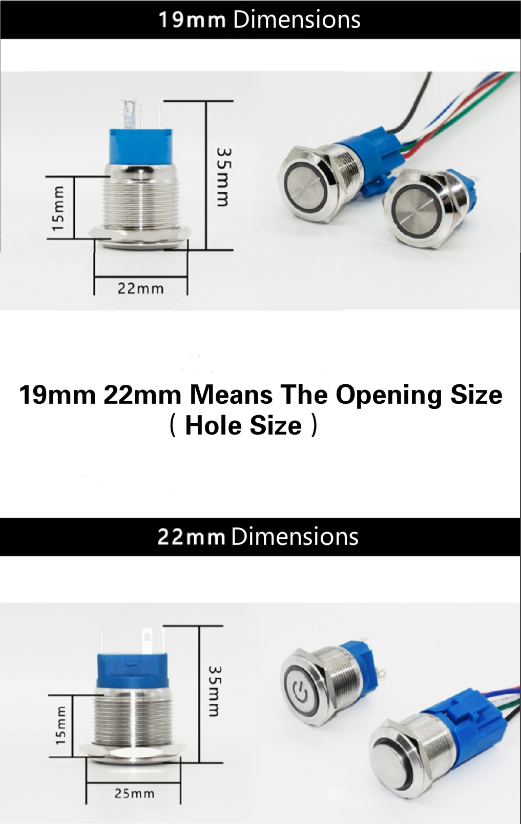 Металлический кнопочный переключатель, 19 мм, 22 мм, светодиодный светильник, 3 в, 6 в, 12 В, 24 В, 220 В, мгновенный самовозврат, самоблокировка, Мощность кнопочный разъем