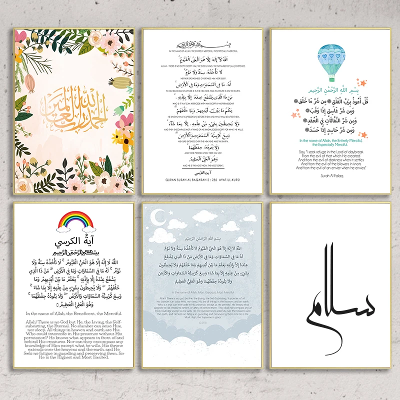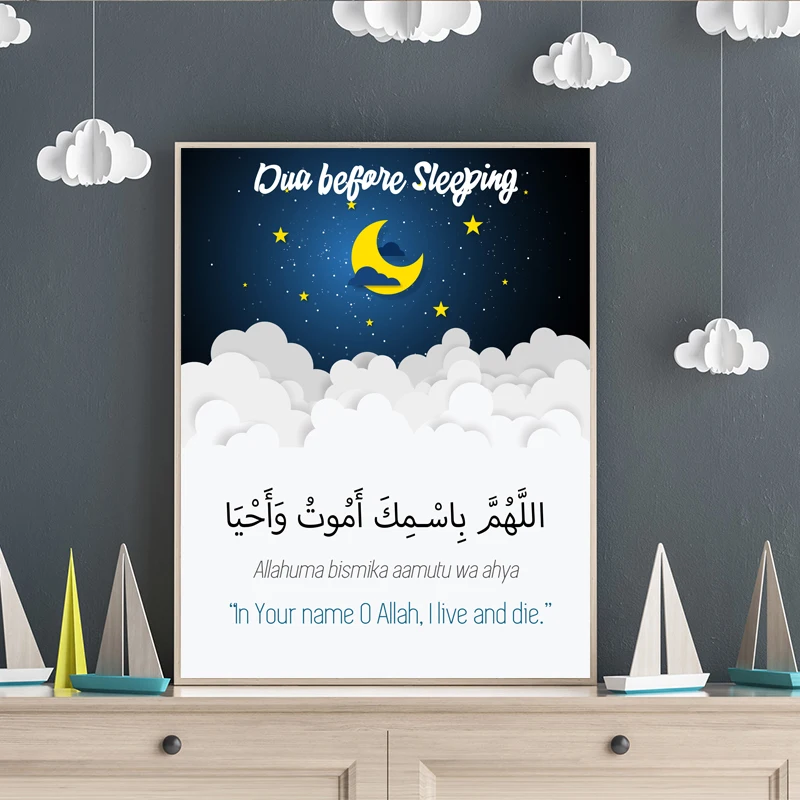 Мусульманский отделка детской стены Дуа перед сном и после пробуждения Цитата принты Исламской детской комнаты настенный художественный холст Картины