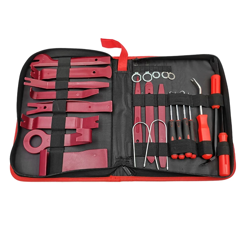 * Полный и универсальный профессиональный набор инструментов для снятия обшивки автомобиля, состоящий из 25 штук. Идеально подходит для демонтажа автомобильной аудио/радио, дверной панели, приборной панели, крепежных зажимов, потолочного освещения, окон, внутренних принадлежностей и т. д.