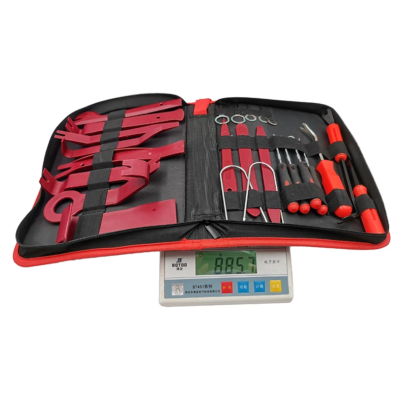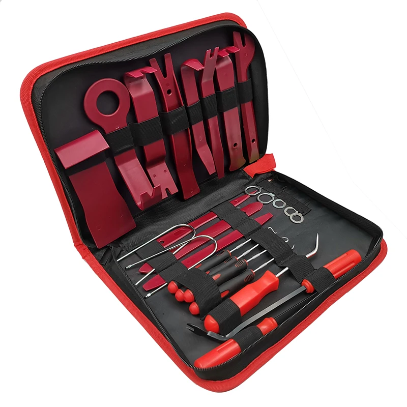 * 11 инструментов для разборки внутренней отделки, 3 инструмента для снятия, 4 инструмента снятие магнитолы, 3 инструмента для снятия клемм автомобиля, 4 крючка для снятия шланга и в подарок переносная сумка для хранения.