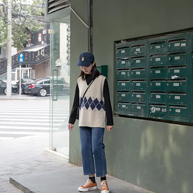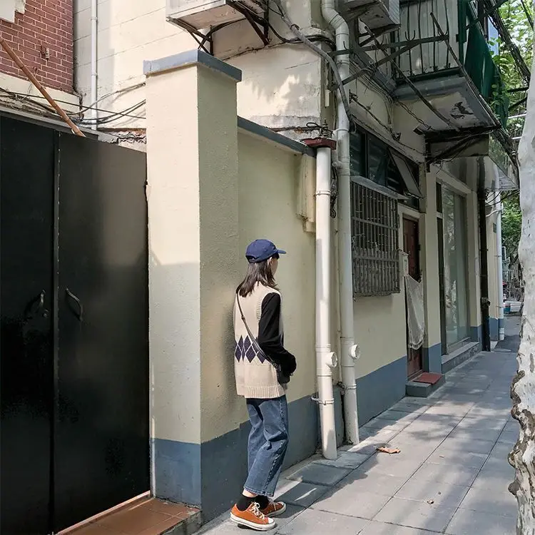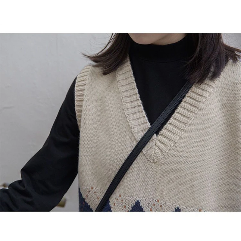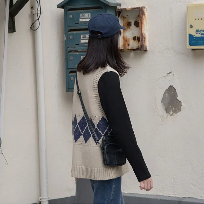 Женский винтажный жилет Vangull Argyle, винтажный Свободный жилет без рукавов с v-образным вырезом, весна-осень 2020