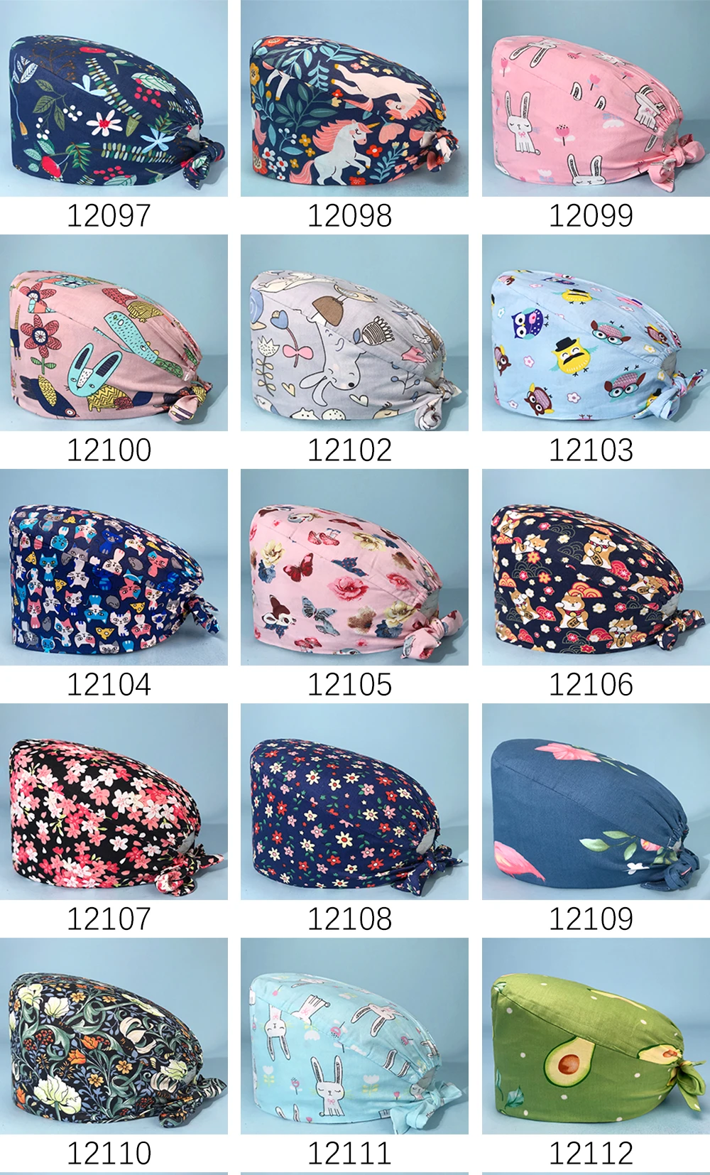 Шапки унисекс с мультяшным принтом для стоматолога, скрабы для врач...