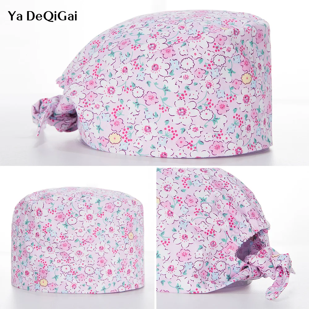 Шапки унисекс для ухода за домашними животными, эластичные, с цветочным принтом, для салонов красоты, рабочая шляпа