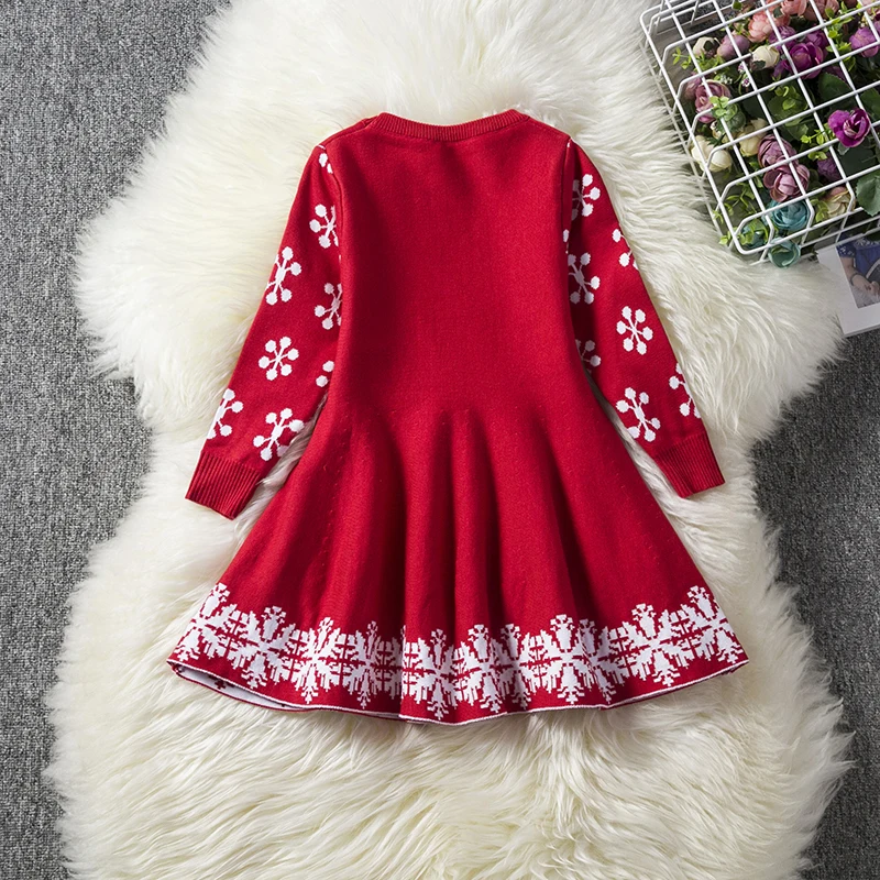 Трикотажное рождественское платье с длинным рукавом, осенне-зимний хлопковый свитер, детские платья для девочек, новогодвечерние чная детская одежда