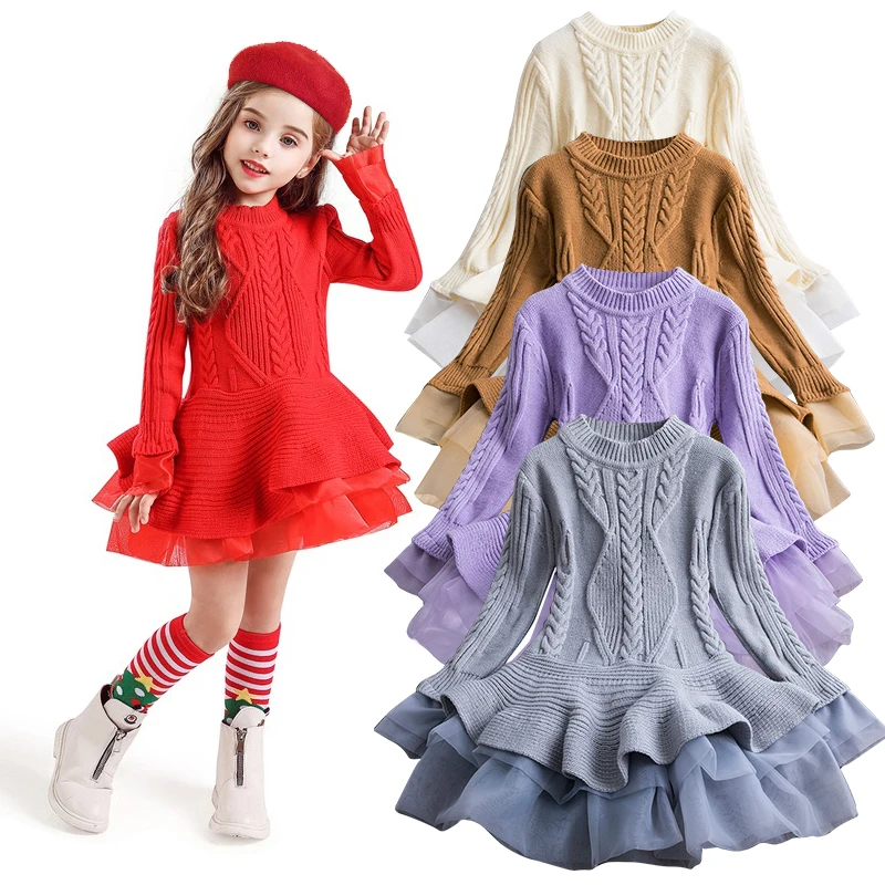 Осенне-зимнее платье для девочек, свитер, вязаная детская одежда, о...