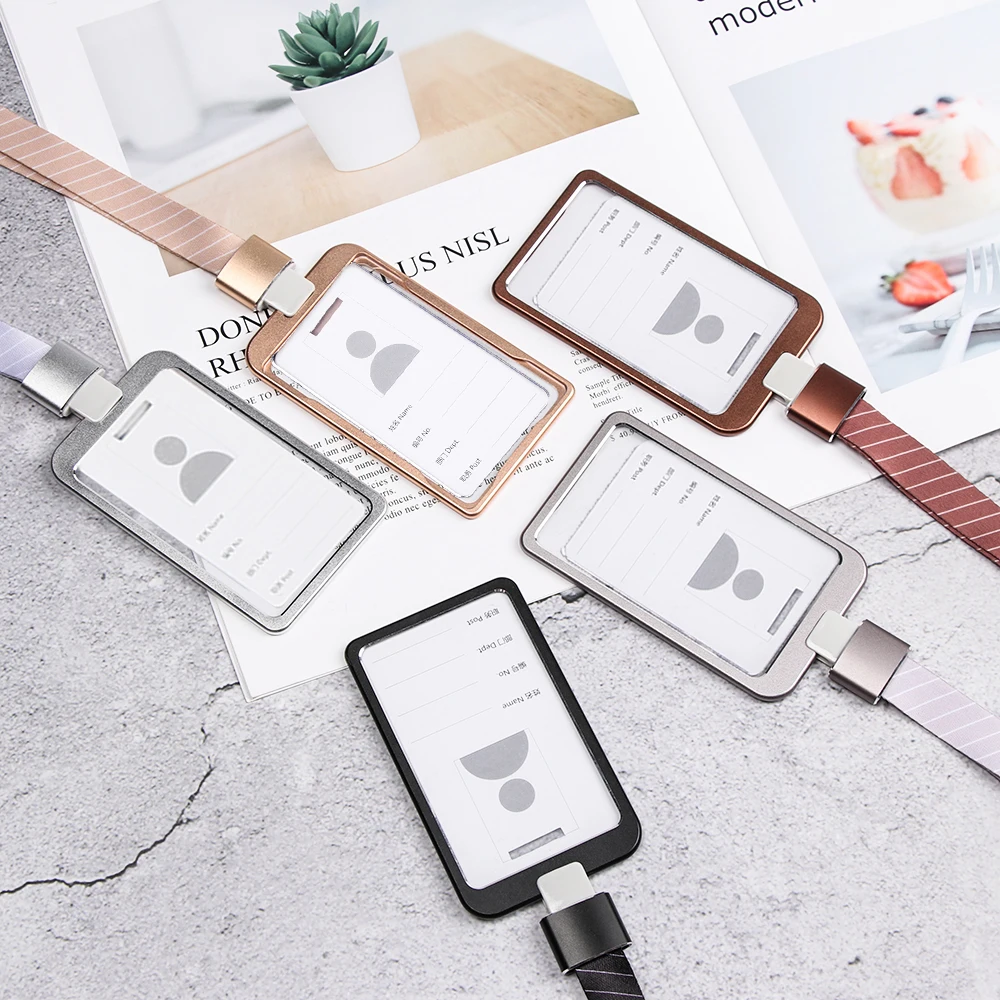 1 шт. держатель для удостоверения личности из алюминиевого сплава, модный металлический чехол для визитных карточек, школьные канцелярские принадлежности со шнурком