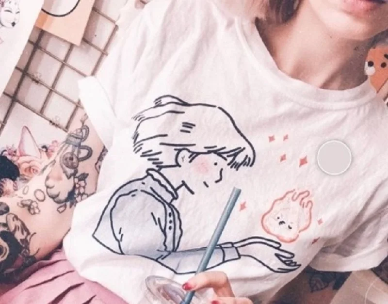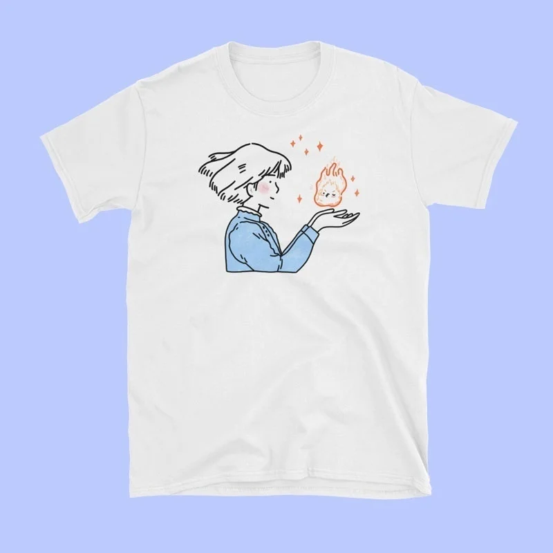 Женская футболка Софи целует кальцифе в стиле японского аниме, кавайная футболка с графическим рисунком Хоула, рубашка с движущимся замком